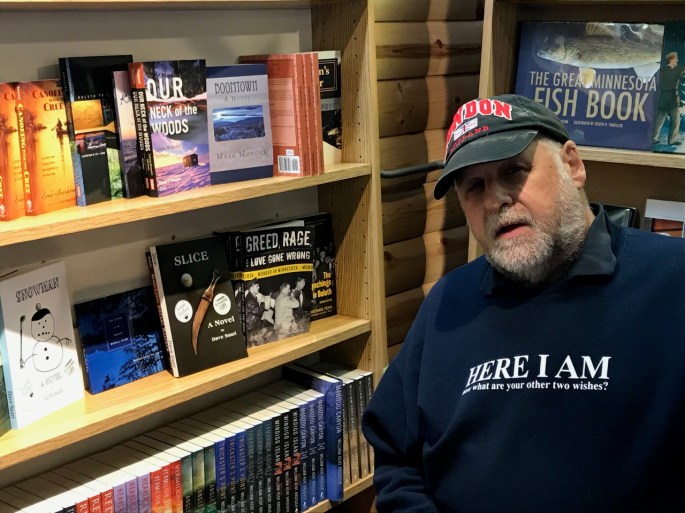 Yep, that’s right — Birchbark is now selling books by yours truly! At the time of the photo, they were only carrying Snowman and Slice. They initially purchased 3 copies of each as a trial. When they actually sold some of the initial allotment (perhaps to their amazement), they purchased three additional copies of Snowman, five additional copies of Slice, and four copies of Lateral Hazard. Each of them is personally signed and adorned with stickers that read “Local Author” and “Author-Signed Copy.” I realize these sales numbers are pitifully small, and Lorna Landvik probably sold more than that in one hour at Drury Lane, but still … she doesn’t actually live in Grand Marais.