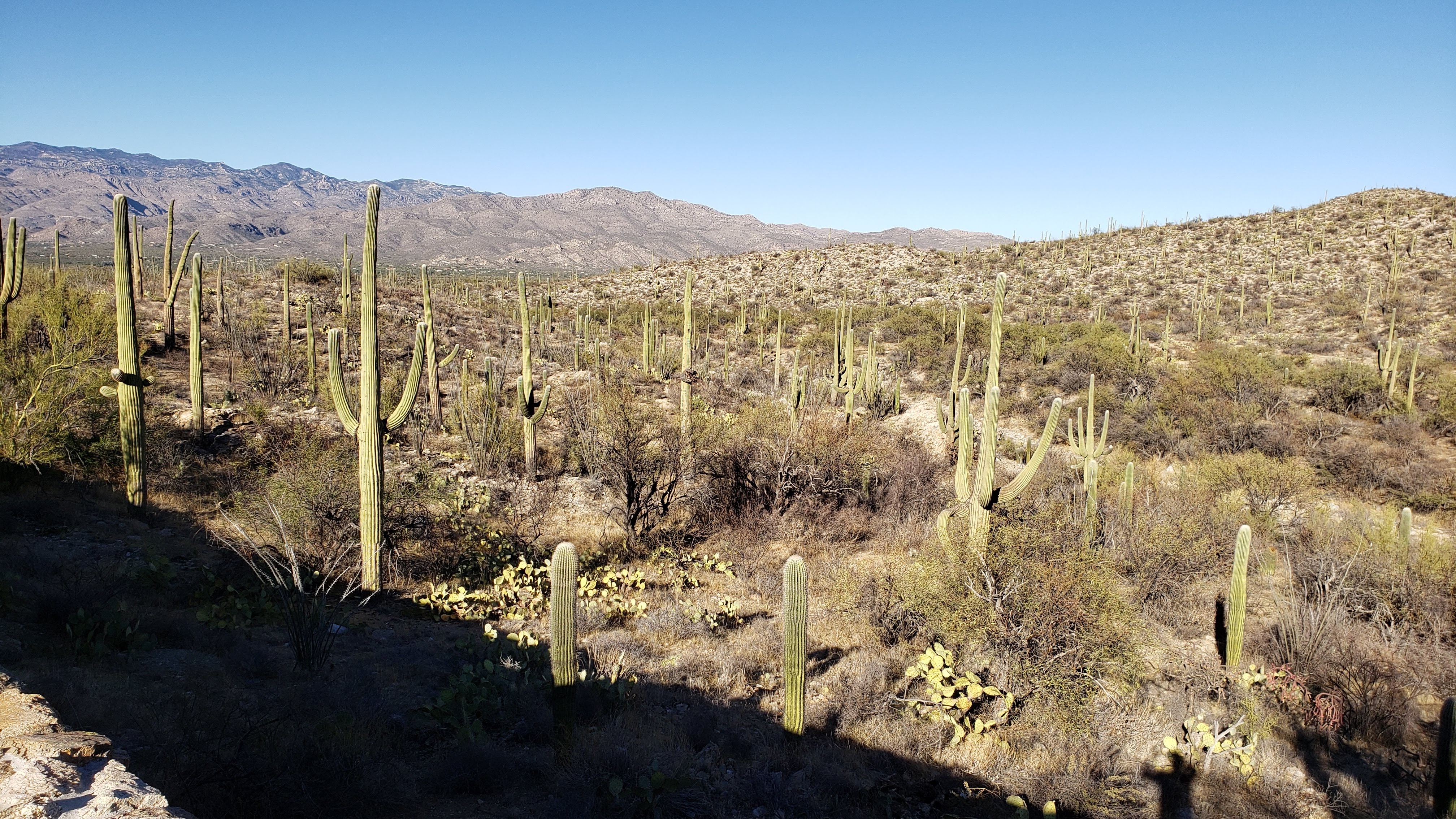 We also made two car trips to the Saguaro National Park (SNP). This park is unusual in that it consists of two parts, SNP East and SNP West, separated by about 30 miles. Each part had a nice loop road with multiple pullouts for scenic vistas and hiking trails. The road at the East park was nicer – entirely paved for a smooth ride – but we thought the West park was better despite the rough, unpaved road there. The West park had more, healthier looking Saguaro cacti and other desert plants, and the vistas were just somehow more impressive. The visitor center at the West park was also more modern and had more to offer. If a traveler only has time to visit one or the other, I’d recommend the West park.