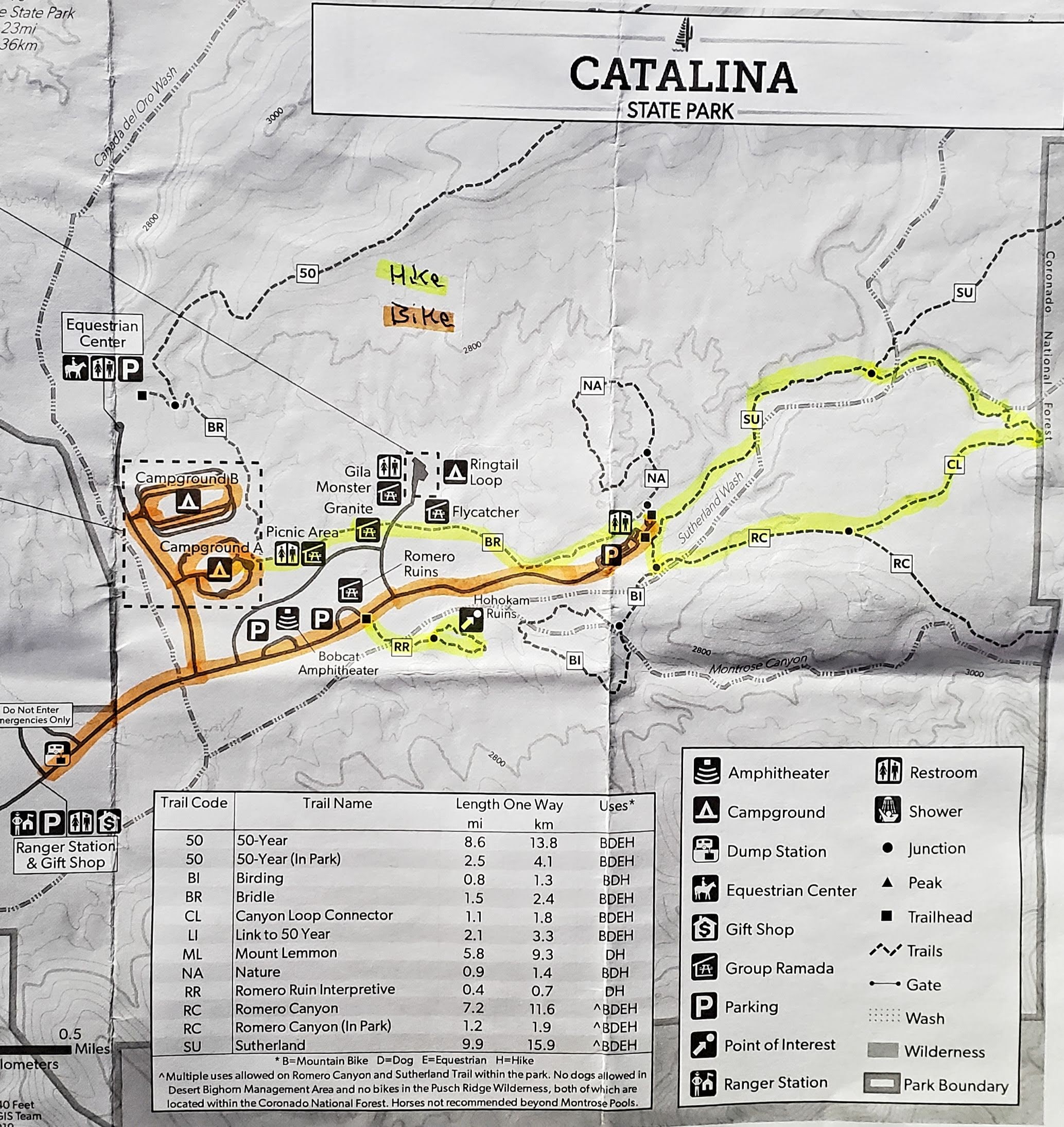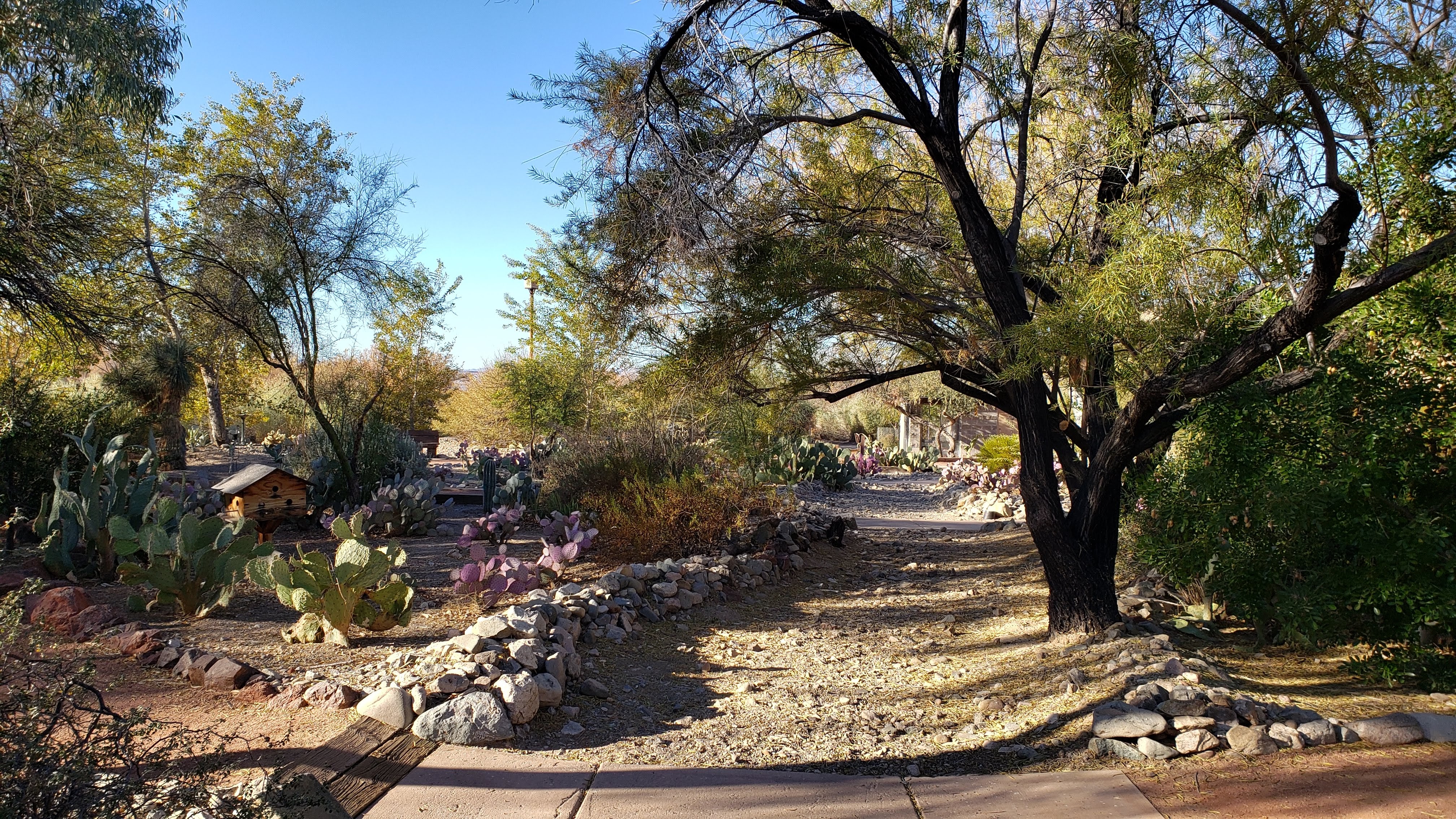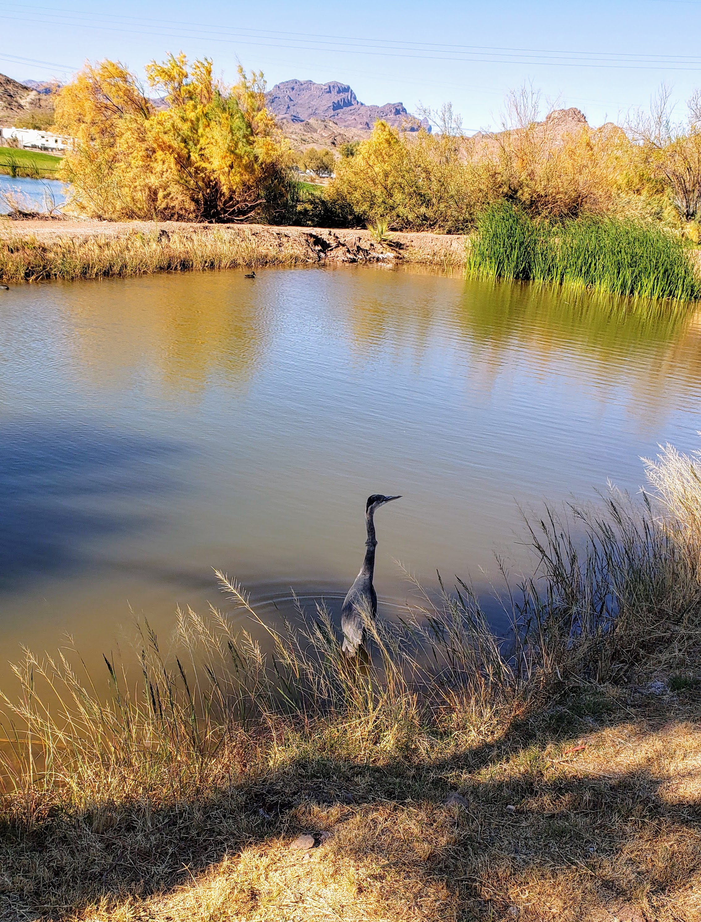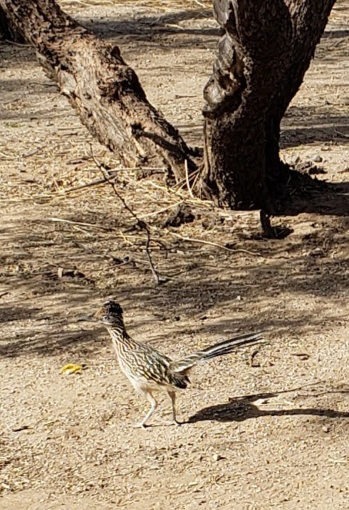 The Resort: The Oasis is one of those giant RV parks, with 901 sites for RVers. Unlike the Rincon Country West Resort back in Tucson, this place does not have any permanent, “park model” mobile homes, so one can’t rent or purchase a place to stay. No RV, no staying here. There are plenty of amenities, including swimming pools and a hot tub, exercise room, 18-hole putting course (which is cute but not really playable due to the long grass), restaurant, and convenience store, but hardly anyone is actually using them due to Covid restrictions and social distancing. There is a nice laundry, restroom, and shower facility about a hundred yards from our site. Though the park is full of people – I’m guessing 80 or 85% of the sites are occupied – we almost never come in proximity to anyone else as we walk or bike around. We have had take out from the restaurant (and even dined in twice with only a couple of other people present) and purchased a few items at the store without feeling anxious, as the few people who go into the resort building have to wear masks and are doing a good job of distancing. Our site is located adjacent to a walled-off RV storage area and there are some nice trees occupied by some birds that have an interesting song and occasionally tap dance on the roof of our RV (great-tailed grackles, as identified by my BirdNET app).