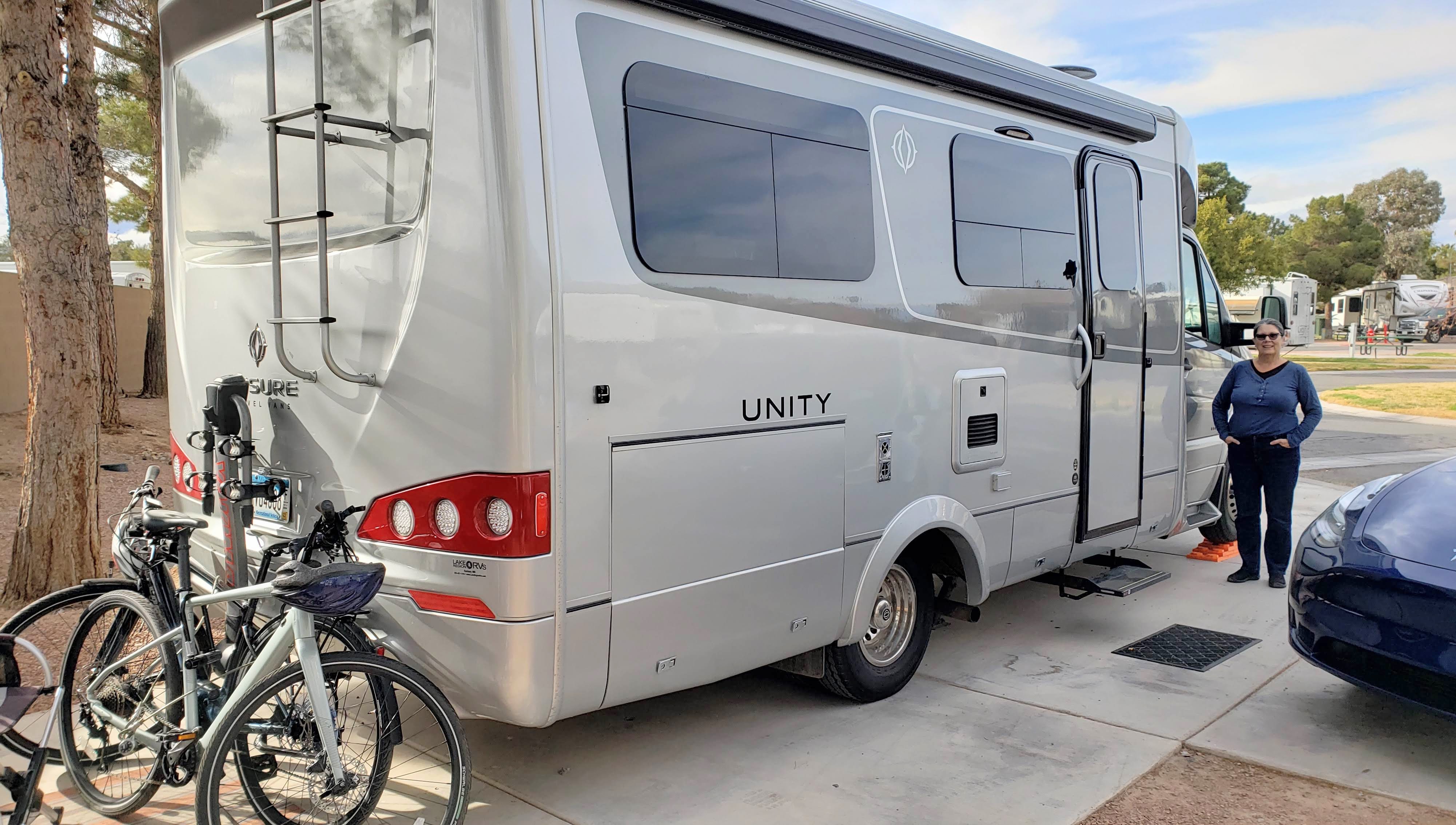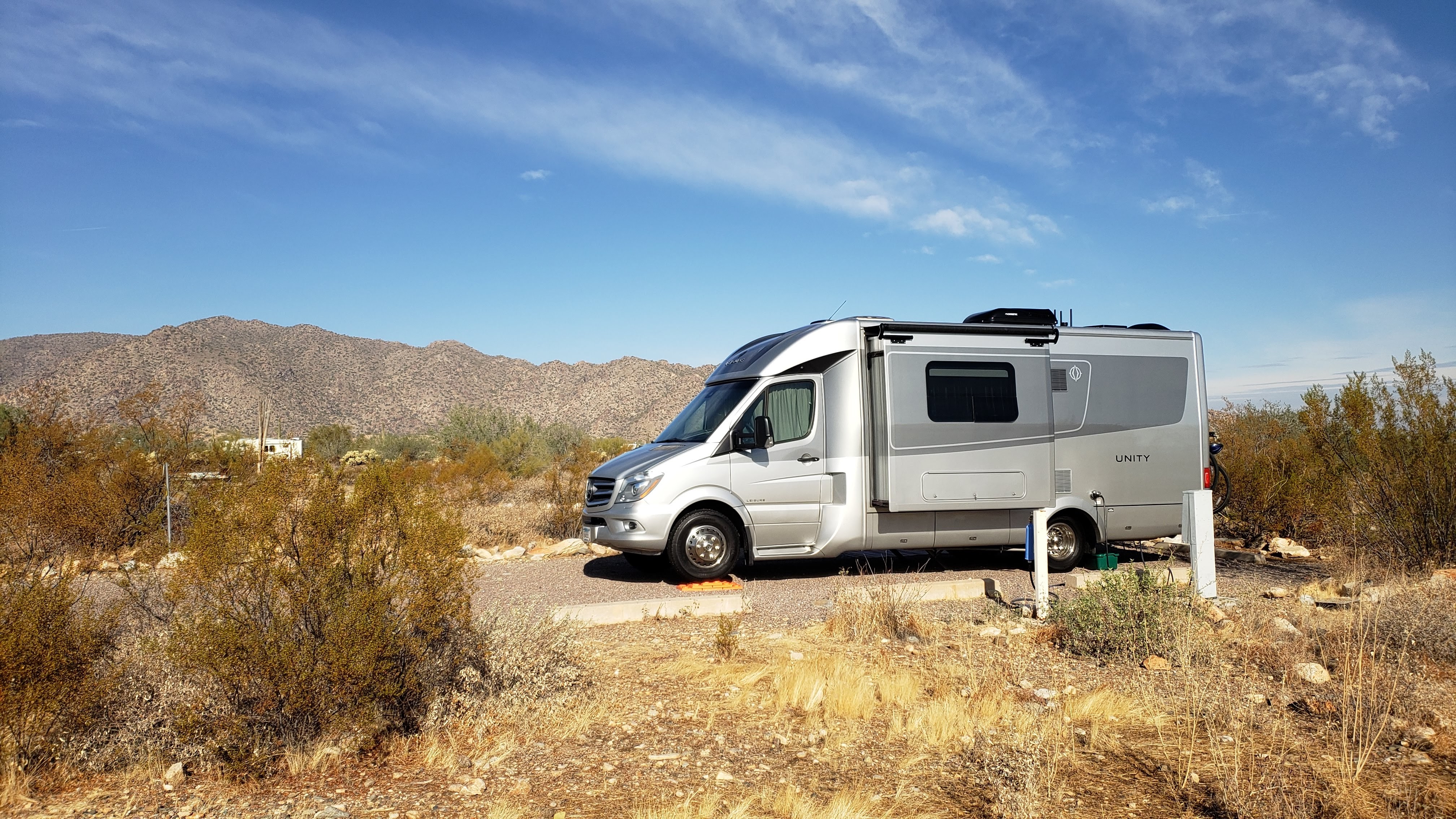 Other Activities: We’ve also done a fair amount of gadding about by car for shopping trips and such. Pat got new glasses to replace the broken ones from White Tank Regional Park, and we’ve picked up a few things at Target and Walmart. Also, we did add something to our traveling retinue that you can get a glimpse of in the photo below – I’ll have more on that in future episodes.