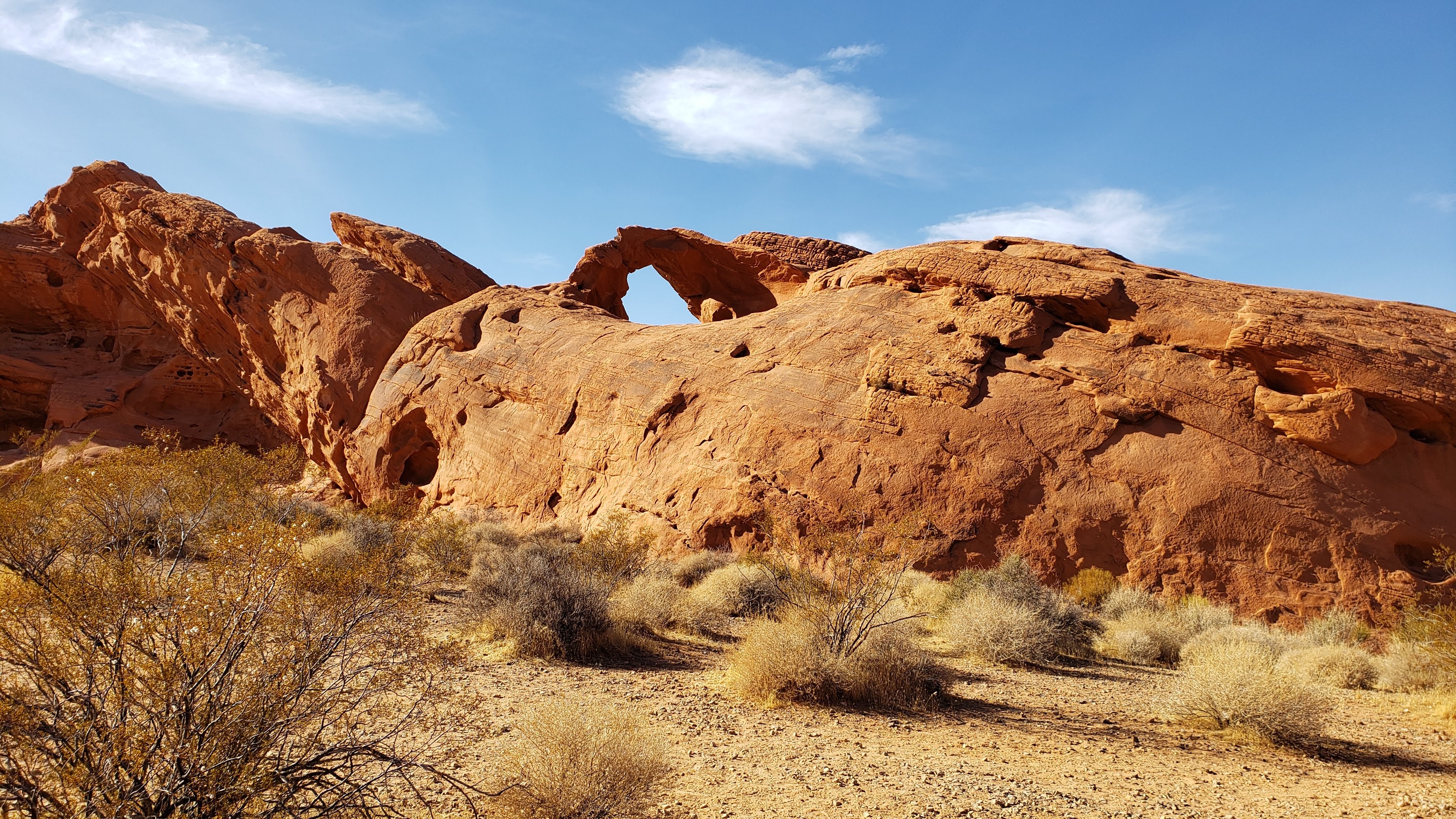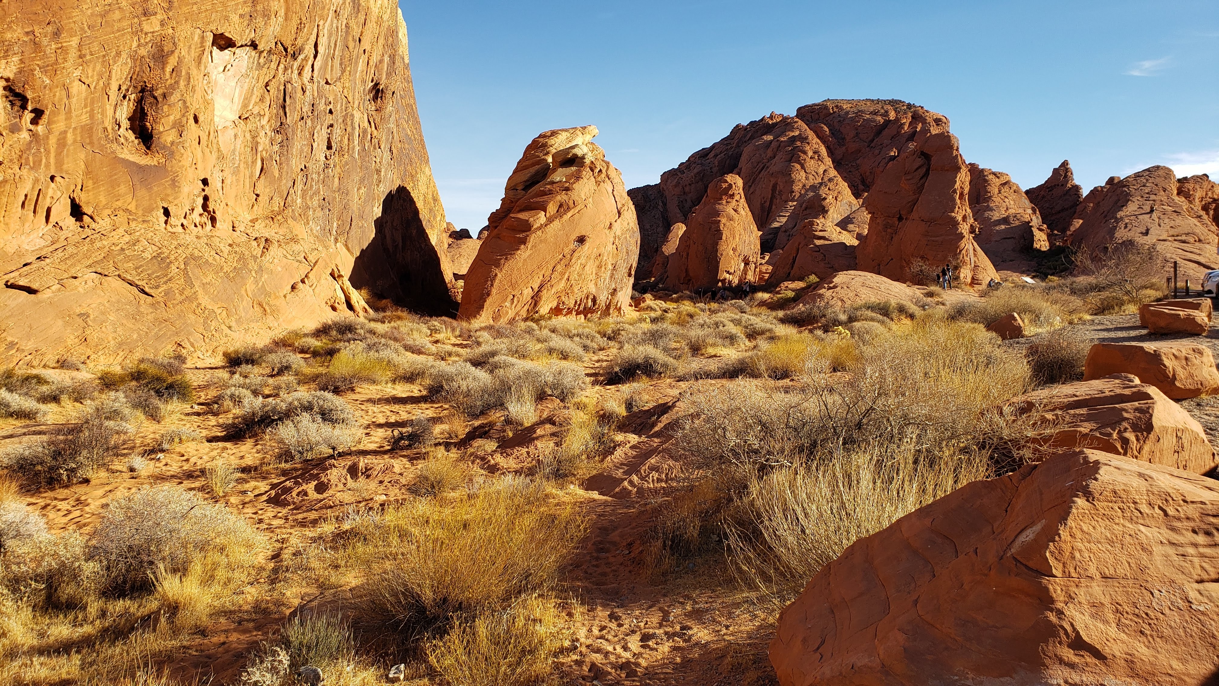 Valley of Fire State Park: This is another beautiful place to visit, located about 60 miles northeast of the RV resort. The name is derived from the red sandstone formations formed 150 million years ago. Complex fault movements, uplifting, and subsequent erosion created a myriad of fascinating and beautiful landscape features. We have visited just once so far, on a Saturday when the park was very busy. We only took a few short walks, feeling uncomfortable hiking among the multitudes, but we intend to return on a less busy weekday for a longer visit.