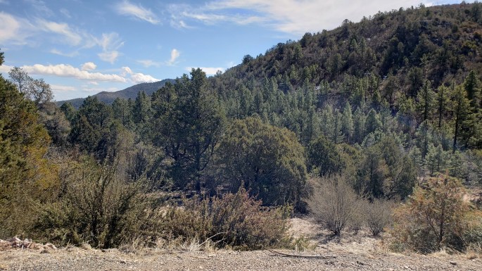 March 7 – 9 (Sunday – Tuesday): Sunday morning we left Point of Rocks and headed for Cottonwood AZ, and our next destination, with the charming name of Dead Horse Ranch State Park. The state park is only about 40 miles from the Point of Rocks by the shortest route, which takes one on a winding road over Woodchute Mountain, with more switchbacks than a Finnish sauna. The elevation in Prescott is 5367 feet, and the elevation in Cottonwood is 3314 ft, but the road reaches an elevation of some 6500 feet near the summit. Pat elected to drive the Tesla on an easier route, south to I17, through a pass between mountains, then north to Cottonwood, which is 20 miles longer but only adds 4 minutes according to Google maps. After some debate about which route to follow, I decided to take the RV over the mountain, expecting the scenery to be more impressive. And was it ever! I must be getting pretty good at driving the RV by now, because I felt very much at ease navigating the multiple hairpin turns while trying not to gawk too much at the views. There was even a fair amount of snow on the mountainside at the high elevation. I sorely missed having my copilot along to snap a photo or two and vowed to come back with the Tesla to get some shots before leaving Cottonwood.