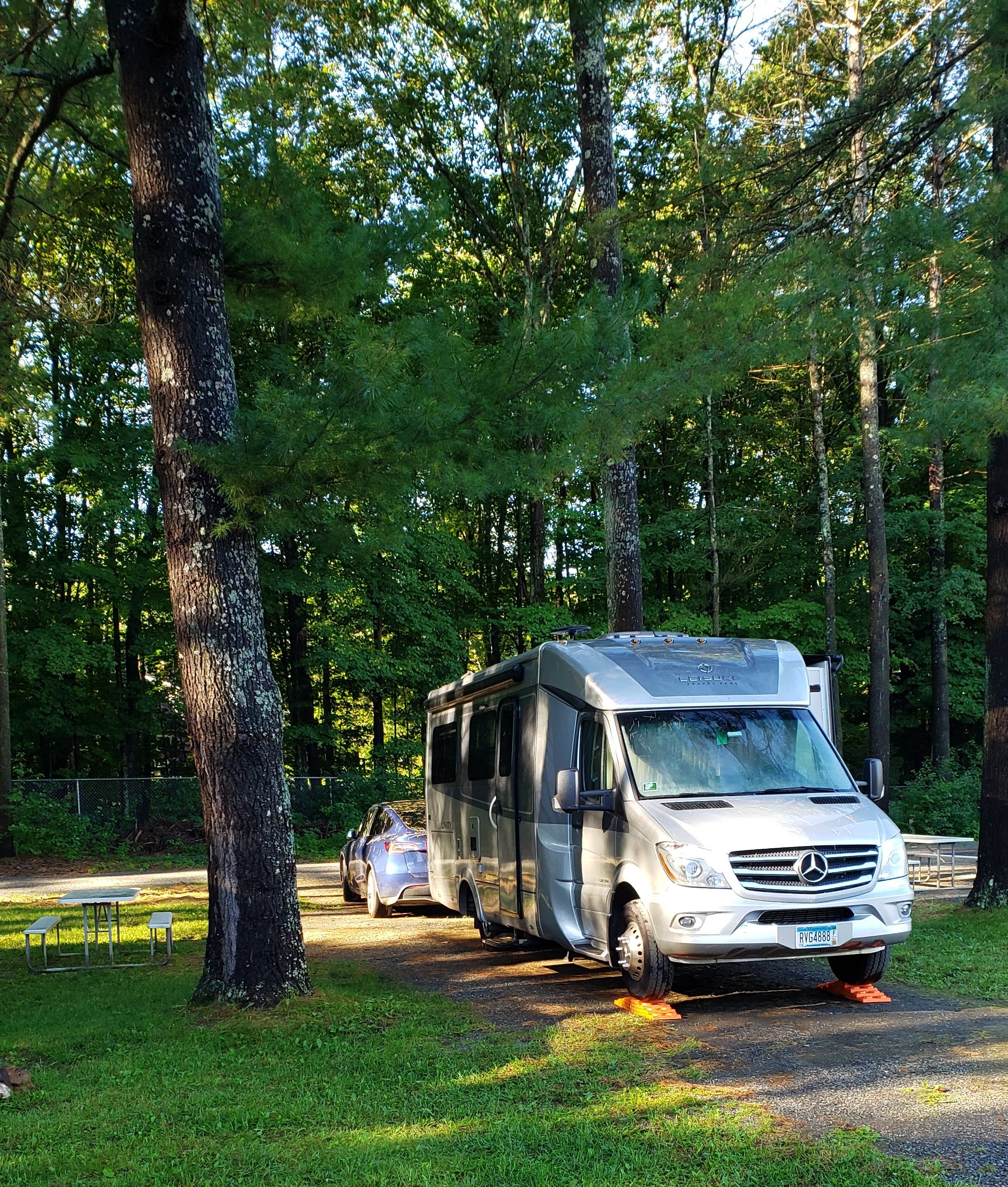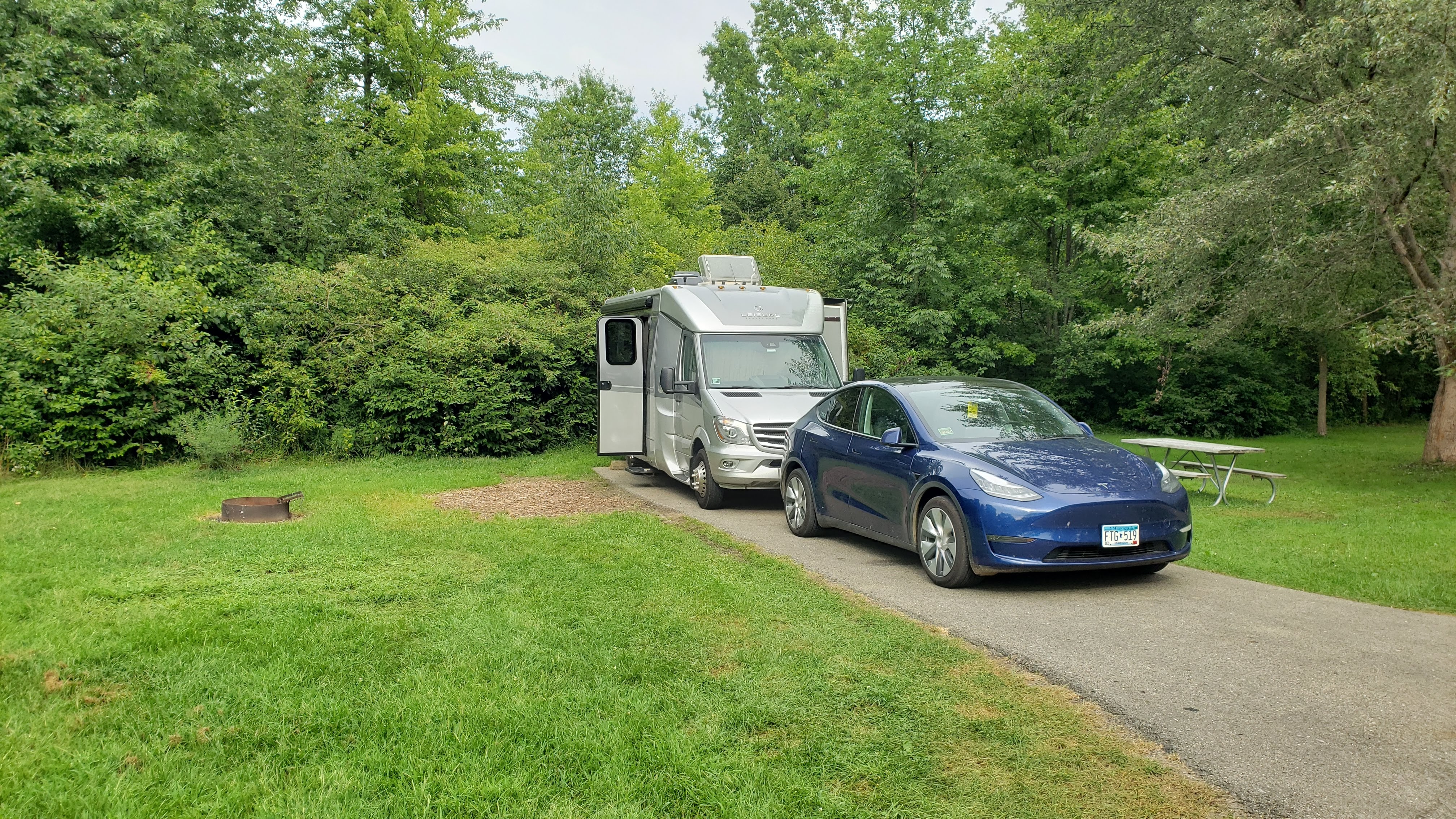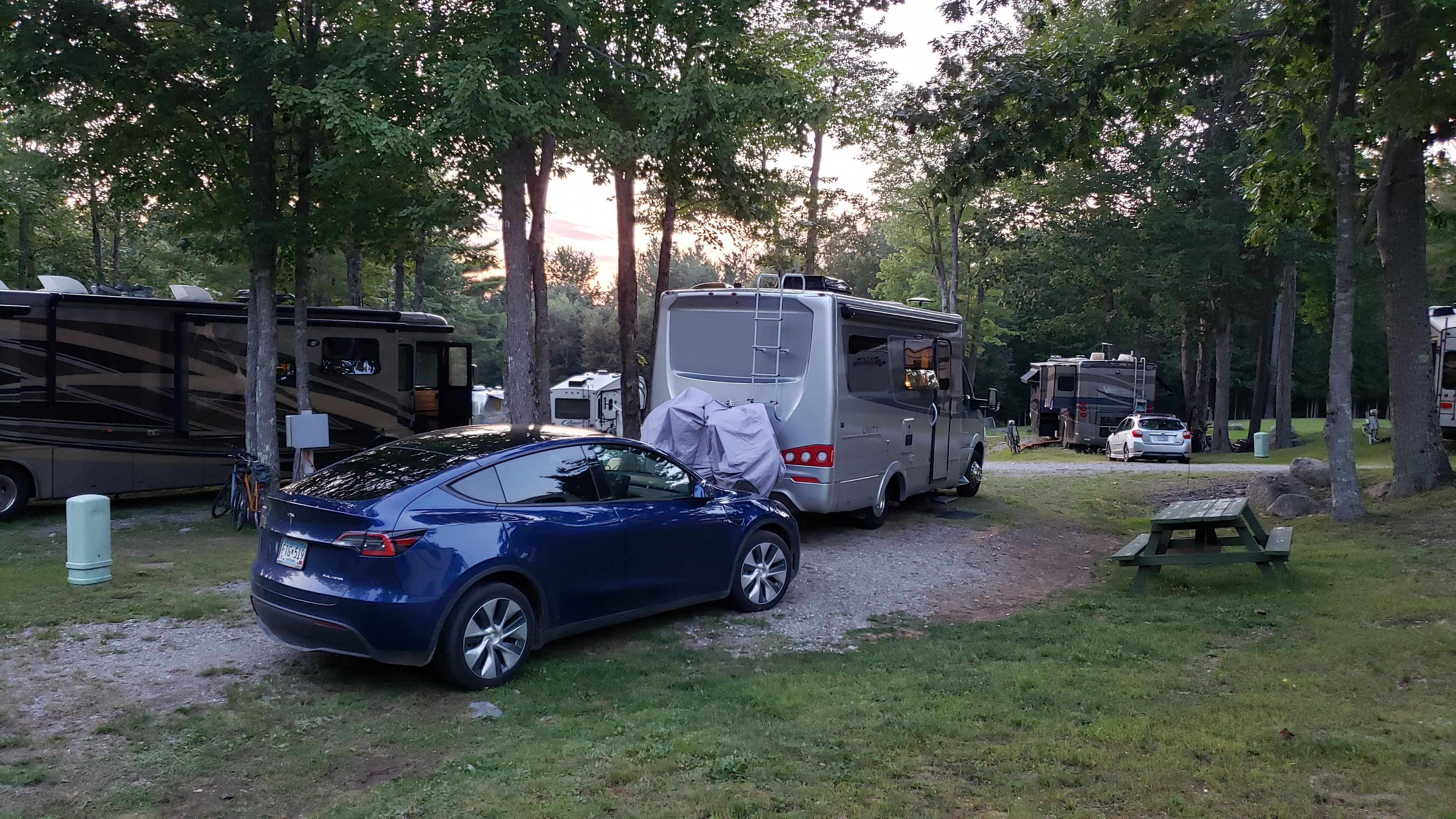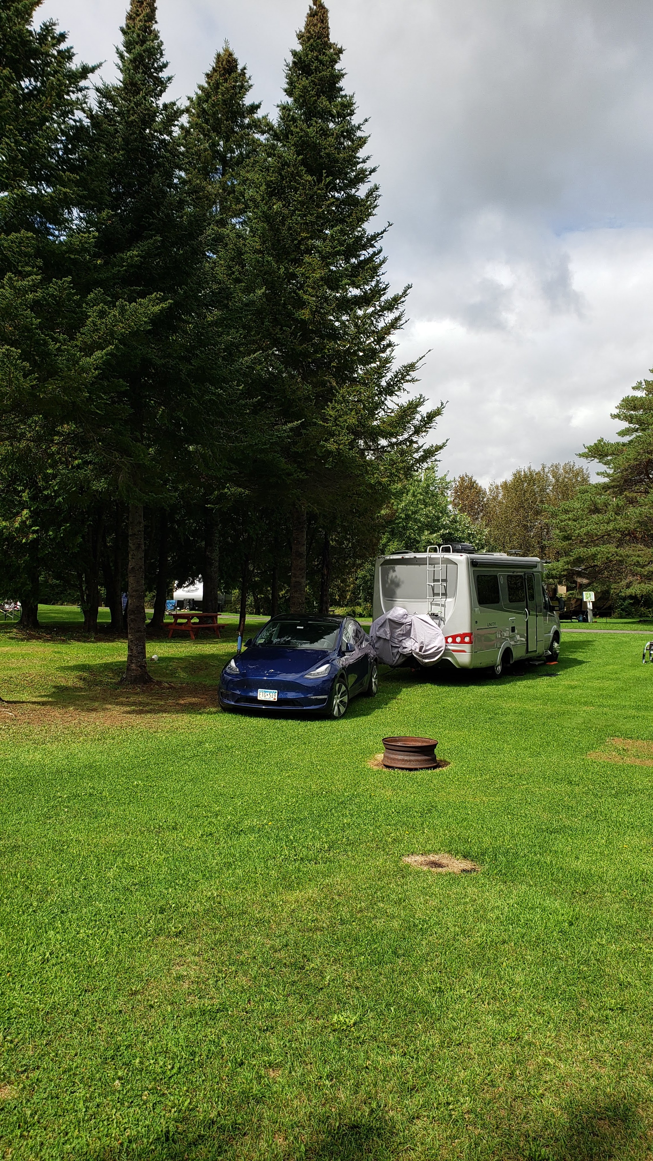 As I sit down to write the second installment of our Eastern Escapade, Pat and I are holed up in the RV at the Houlton / Canadian Border KOA in Houlton, ME. She’s engrossed in one of her consulting projects, while I’m just uselessly twiddling my thumbs (or at least I was before I started writing.) The weather outside is miserable, with a steady rain that has persisted for more than 24 hours with nary a break, punctuated by extended periods of drenching downpours – apparently due to the presence of Hurricane Larry in the nearby Atlantic Ocean. Our journey has ground to a halt as we wait. What are we waiting for, and what have we been up to until now? Read on, and all will be revealed.