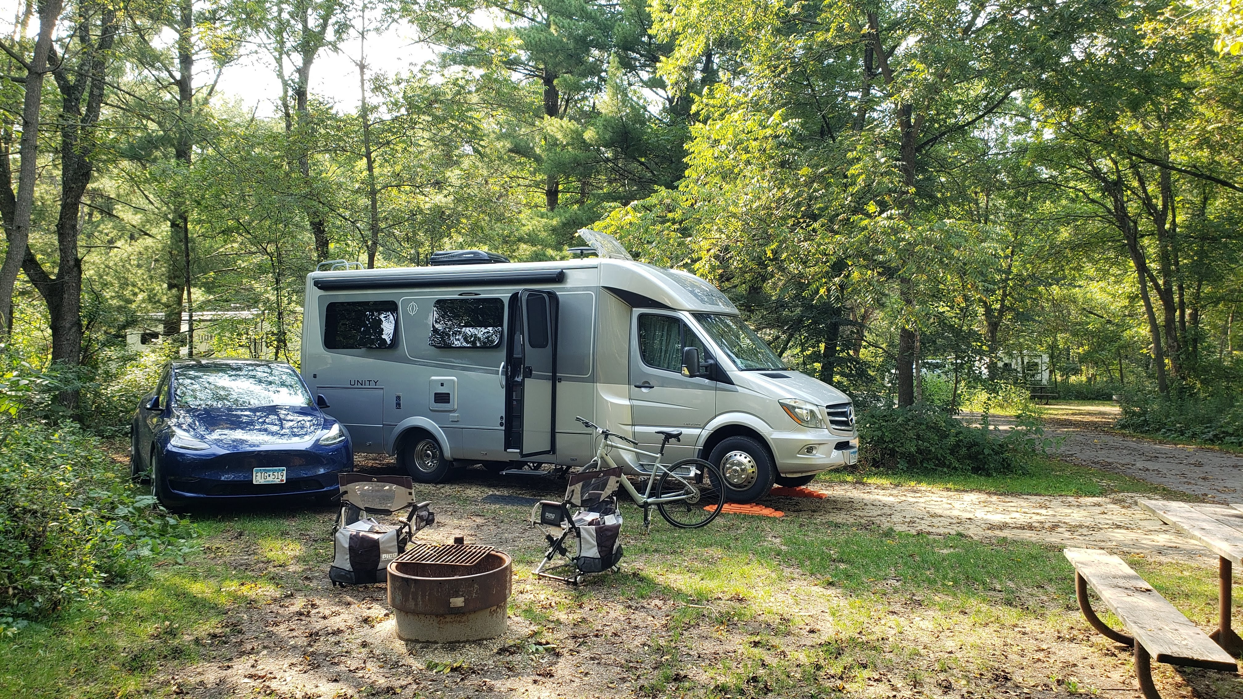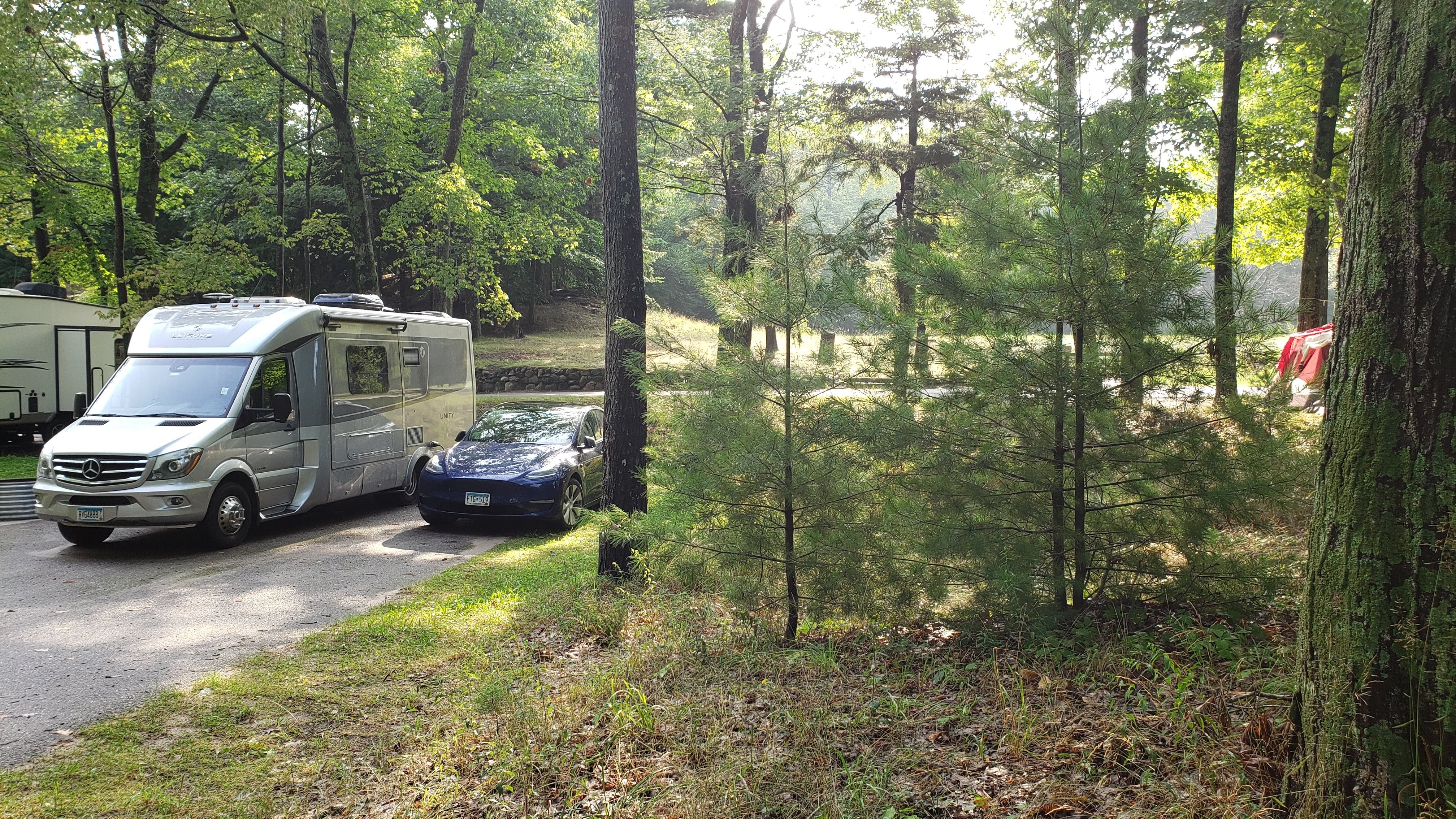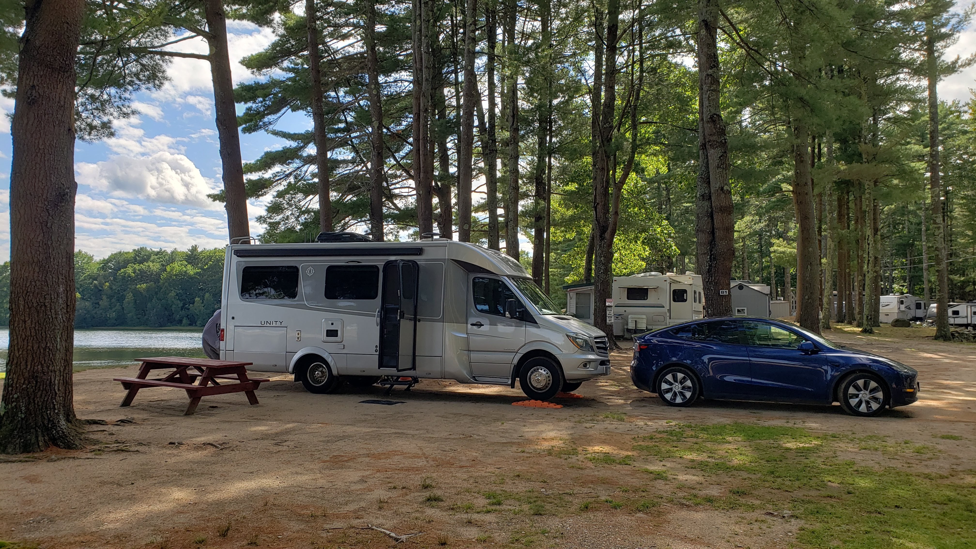 As I sit down to write the second installment of our Eastern Escapade, Pat and I are holed up in the RV at the Houlton / Canadian Border KOA in Houlton, ME. She’s engrossed in one of her consulting projects, while I’m just uselessly twiddling my thumbs (or at least I was before I started writing.) The weather outside is miserable, with a steady rain that has persisted for more than 24 hours with nary a break, punctuated by extended periods of drenching downpours – apparently due to the presence of Hurricane Larry in the nearby Atlantic Ocean. Our journey has ground to a halt as we wait. What are we waiting for, and what have we been up to until now? Read on, and all will be revealed.