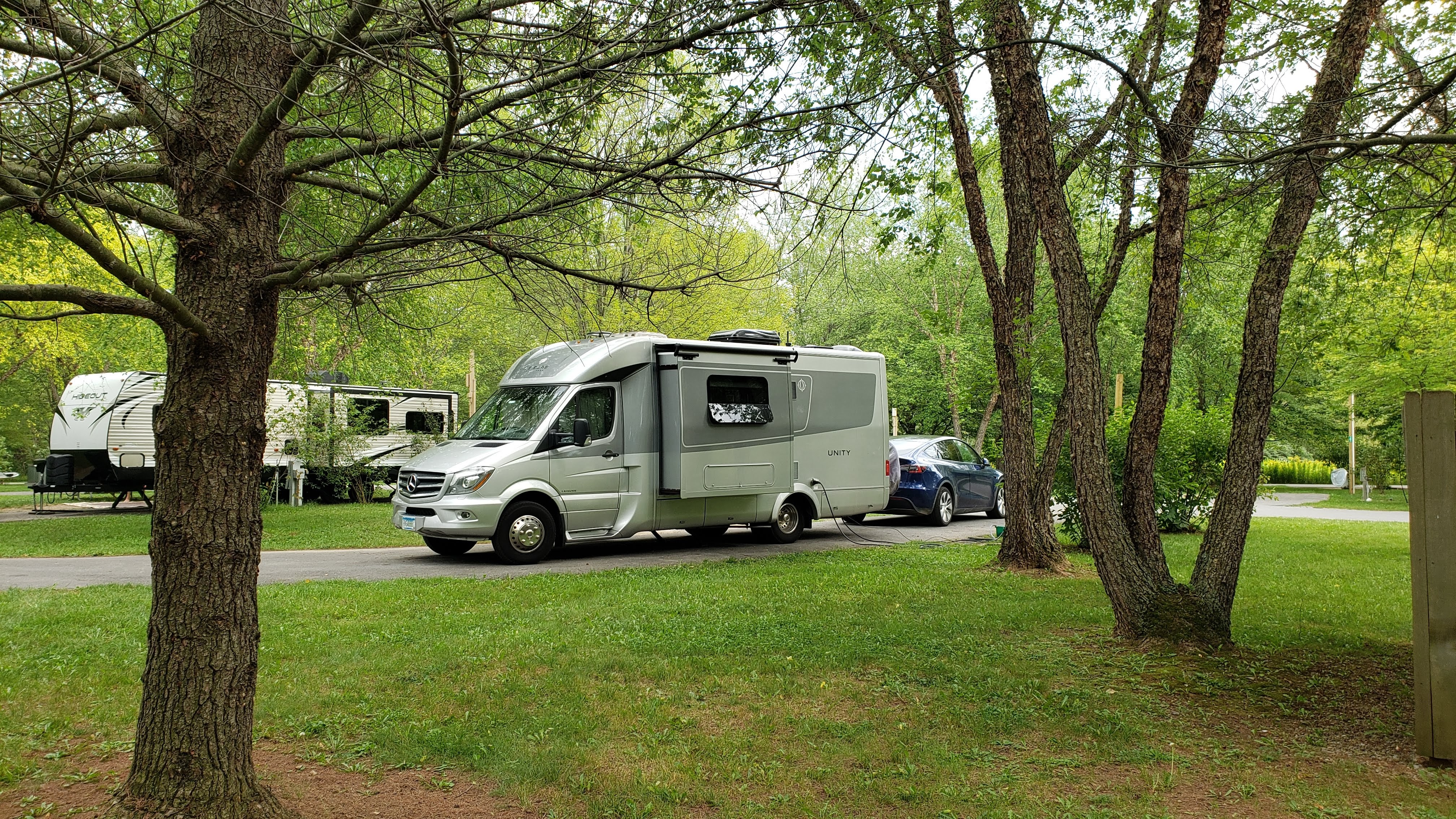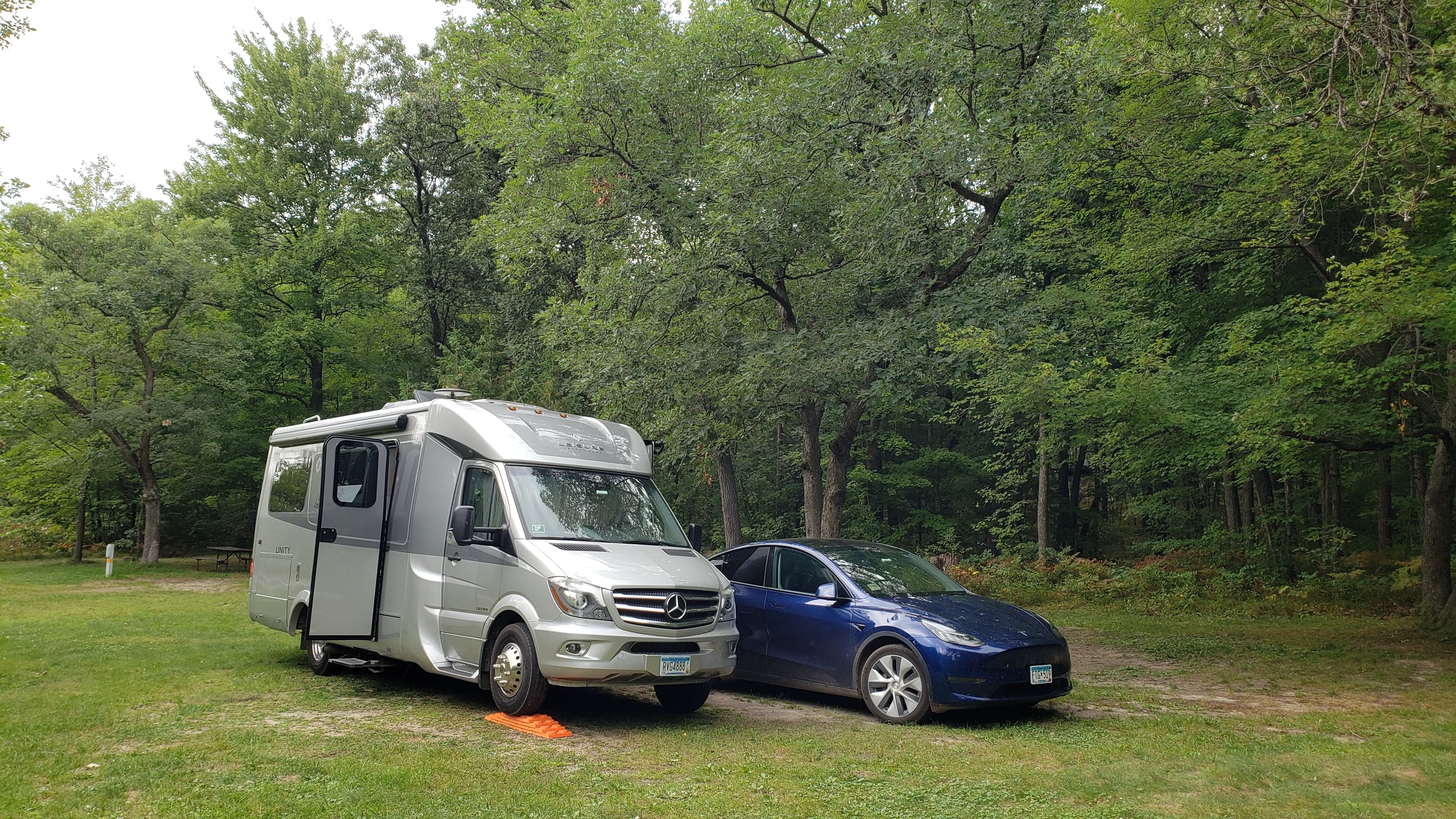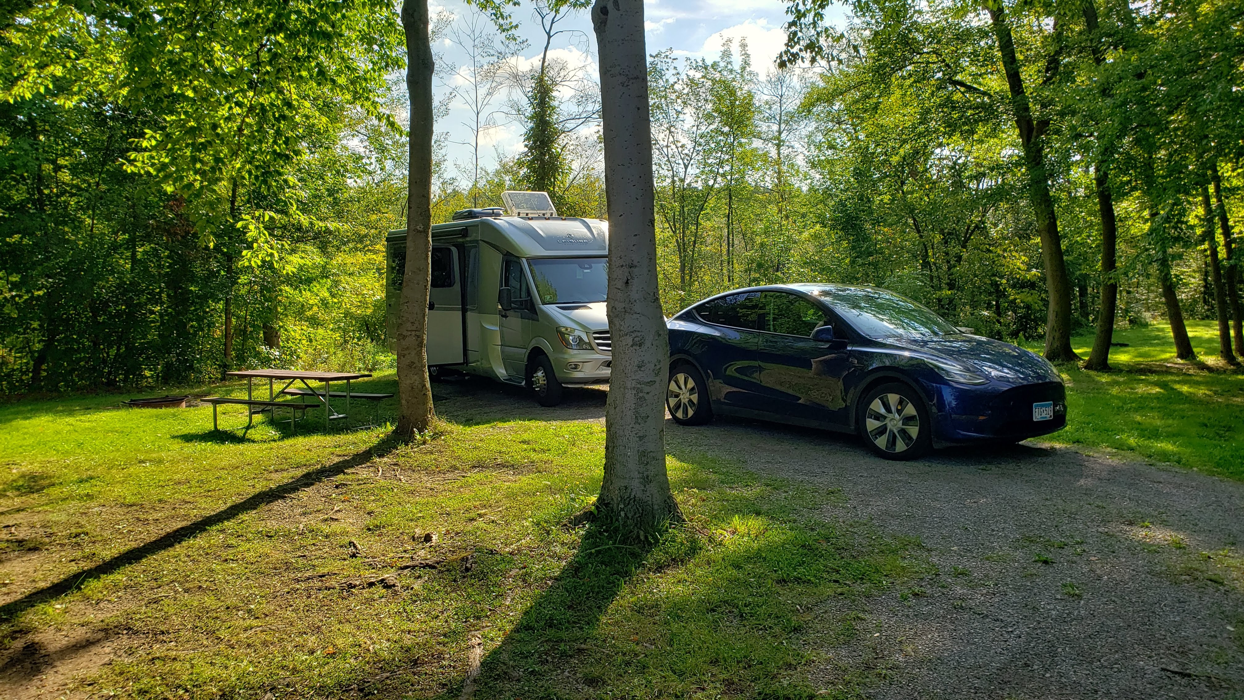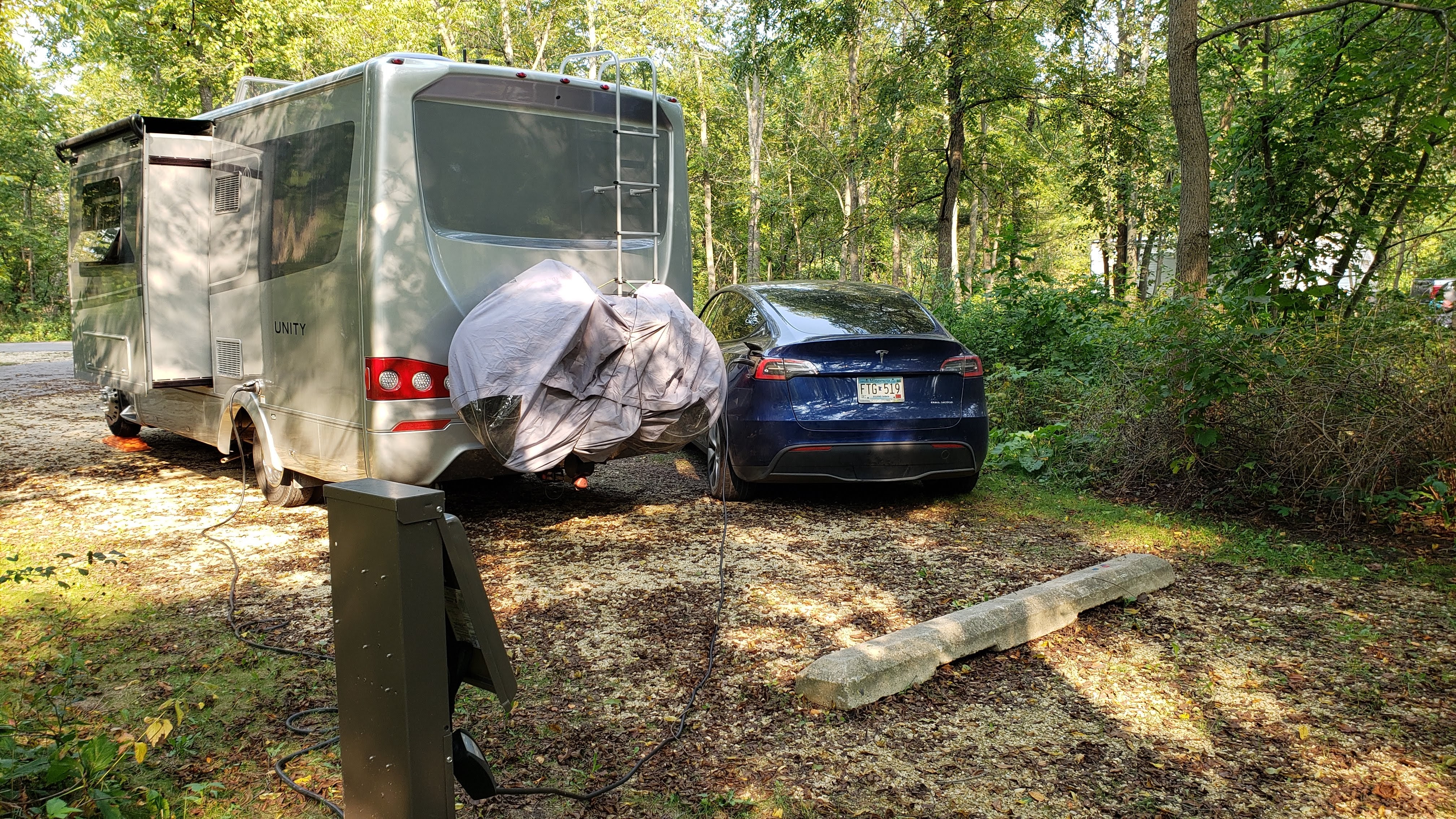 As I sit down to write the second installment of our Eastern Escapade, Pat and I are holed up in the RV at the Houlton / Canadian Border KOA in Houlton, ME. She’s engrossed in one of her consulting projects, while I’m just uselessly twiddling my thumbs (or at least I was before I started writing.) The weather outside is miserable, with a steady rain that has persisted for more than 24 hours with nary a break, punctuated by extended periods of drenching downpours – apparently due to the presence of Hurricane Larry in the nearby Atlantic Ocean. Our journey has ground to a halt as we wait. What are we waiting for, and what have we been up to until now? Read on, and all will be revealed.