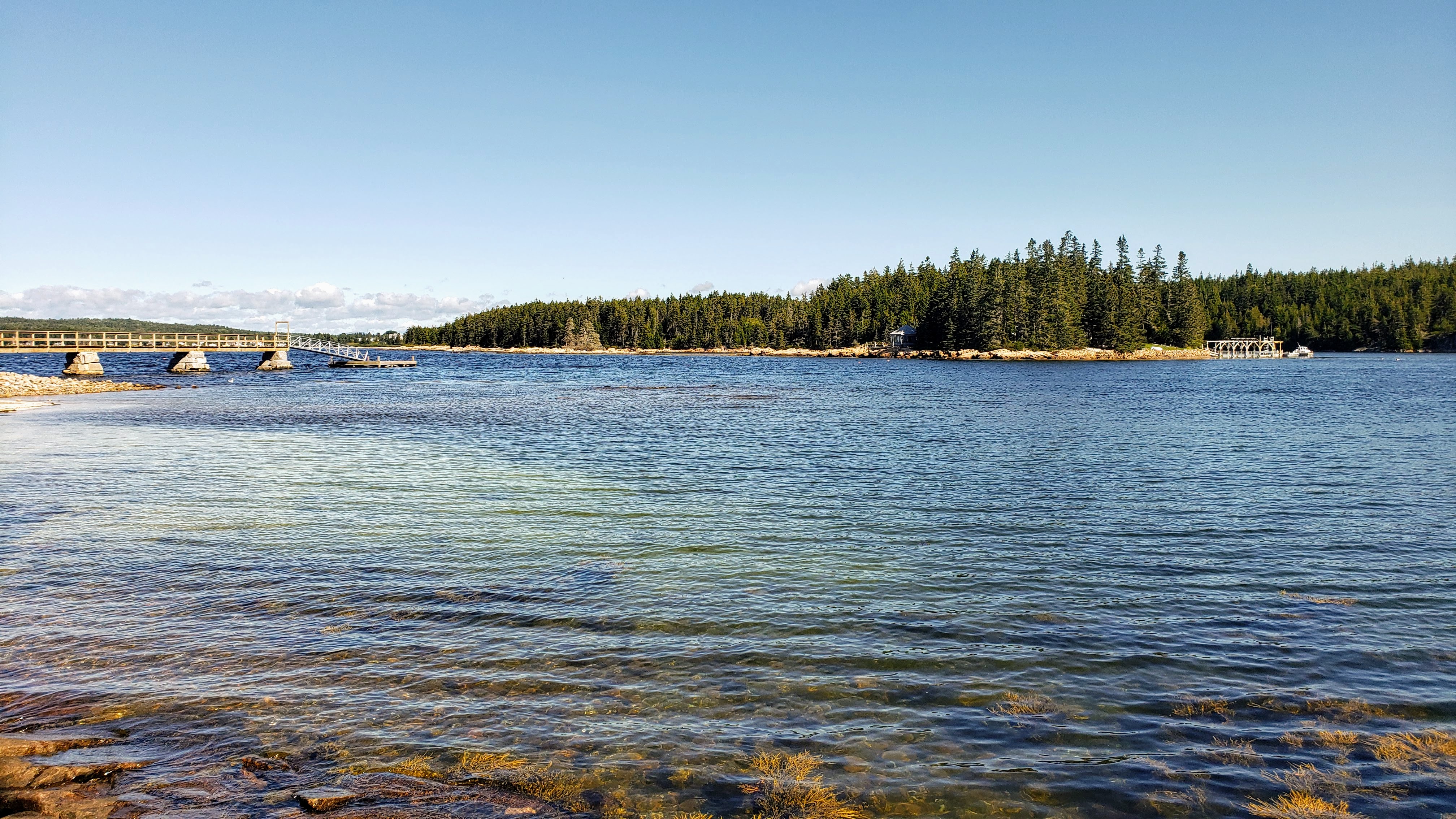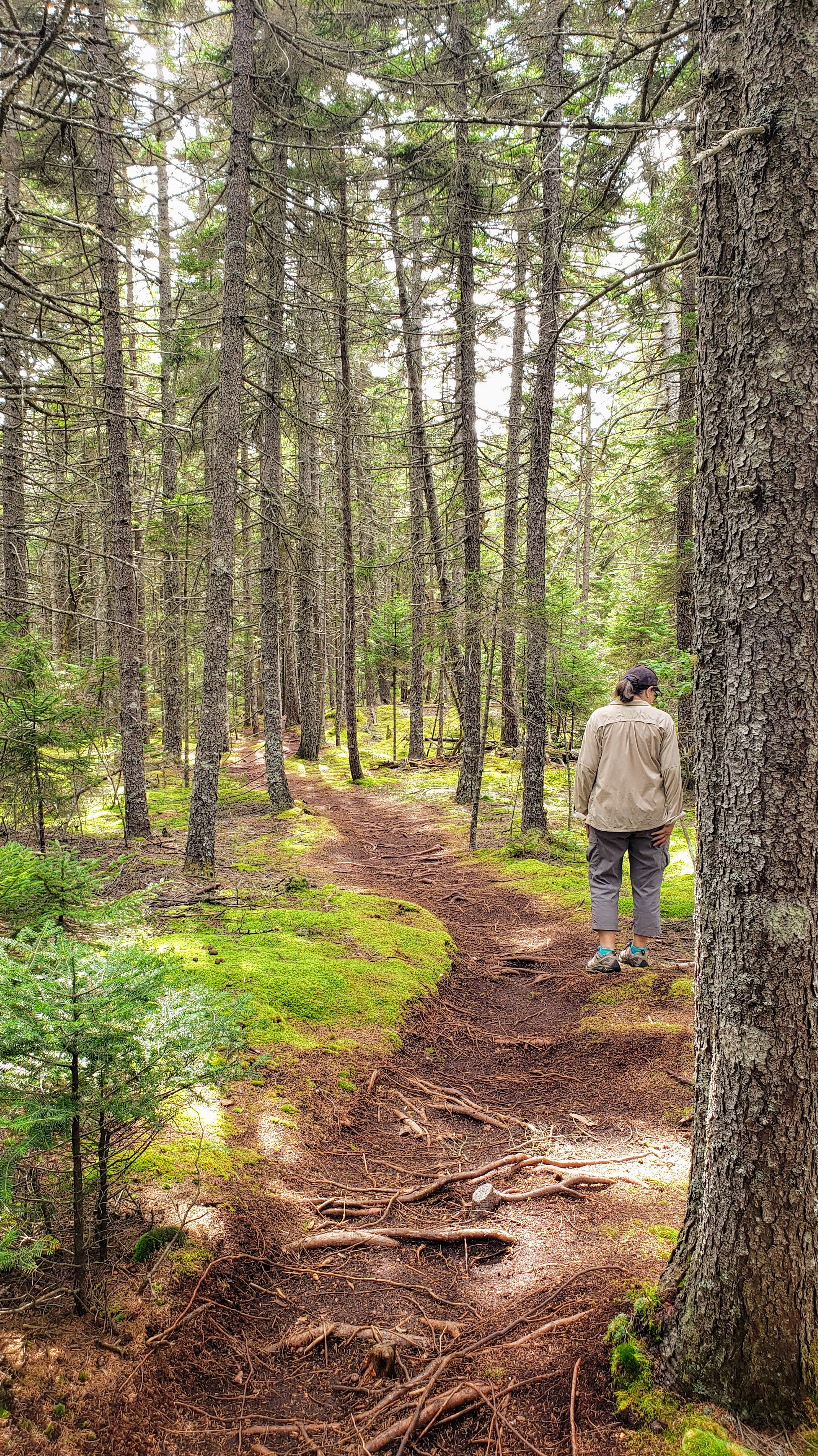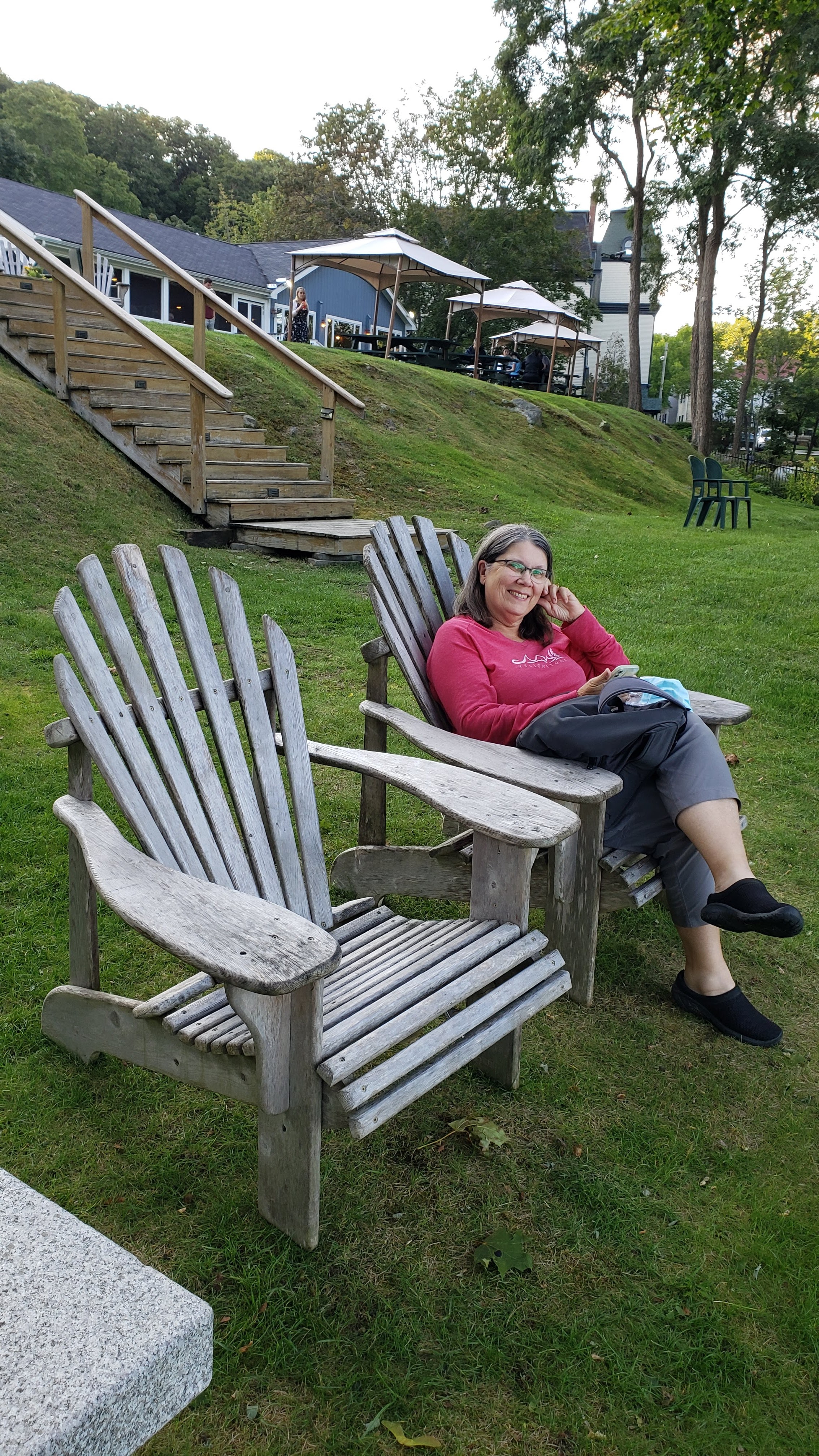 On Tuesday morning, I took a quick bike ride to Frazer Point and back and then stowed the bikes on the RV’s bike rack once again. I then drove to the nearby town of Winter Harbor for an excellent takeout lunch from a place called Chase’s Restaurant (lobster roll for Pat, and something called a lobster BLT for me). Once properly fueled, we took a hike along the Lower Harbor Trail, just across the main access road from the campground. This was a great trail that passed through the woods and alongside the waters of Winter Harbor to the east of Schoodic Peninsula. However, in contrast to the easy, open trails we took at the Jordan Pond on Monday, this one was rough and rugged, with lots of small hills and many sections that were strewn with roots and rocks. The return leg of the hike followed the wide, gravel paths I mentioned above, but my knees were not in any way happy when we got back. While it was only a little over 5 miles, it felt like 25 to me. It’s no fun getting old, dear readers.