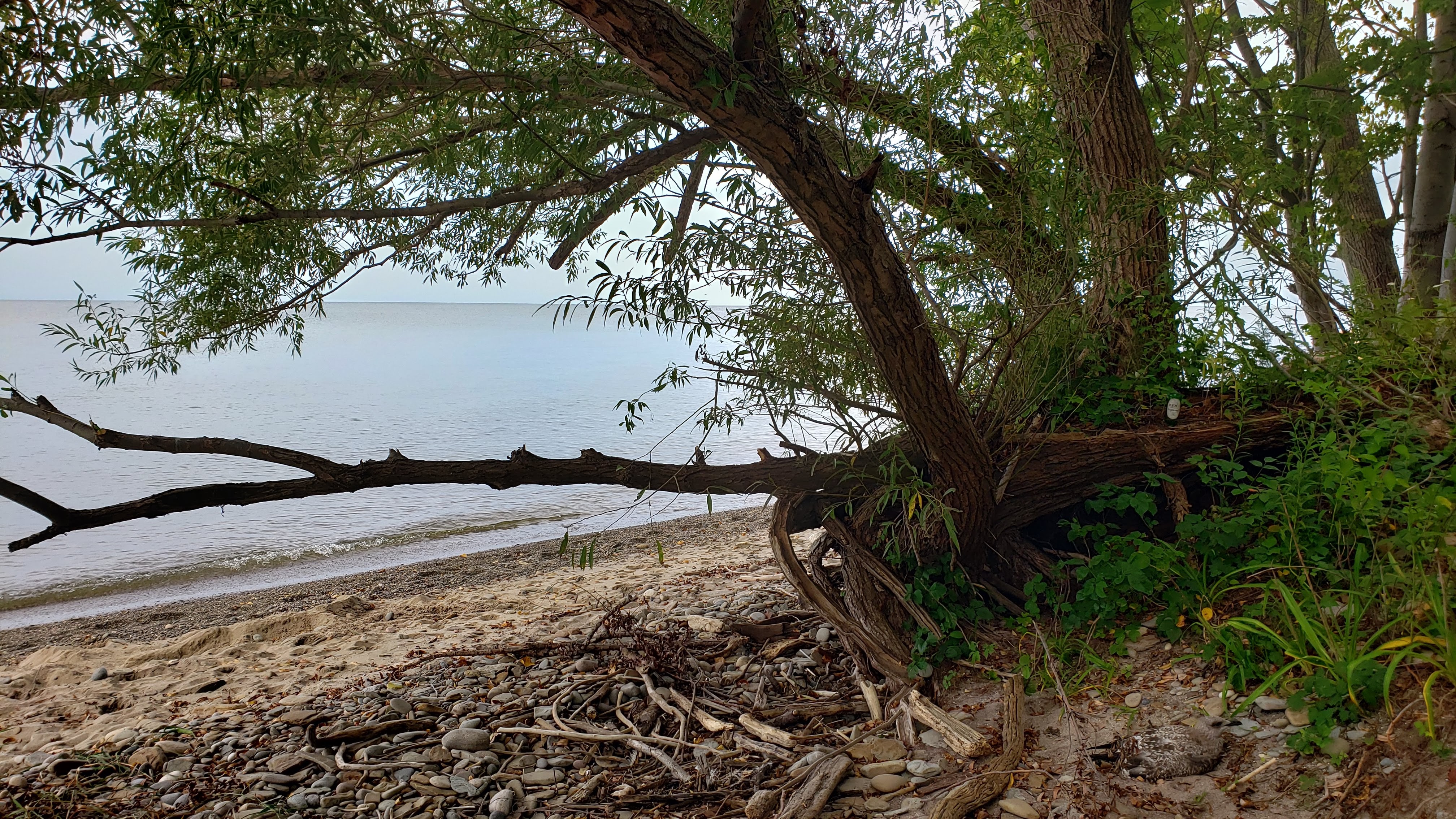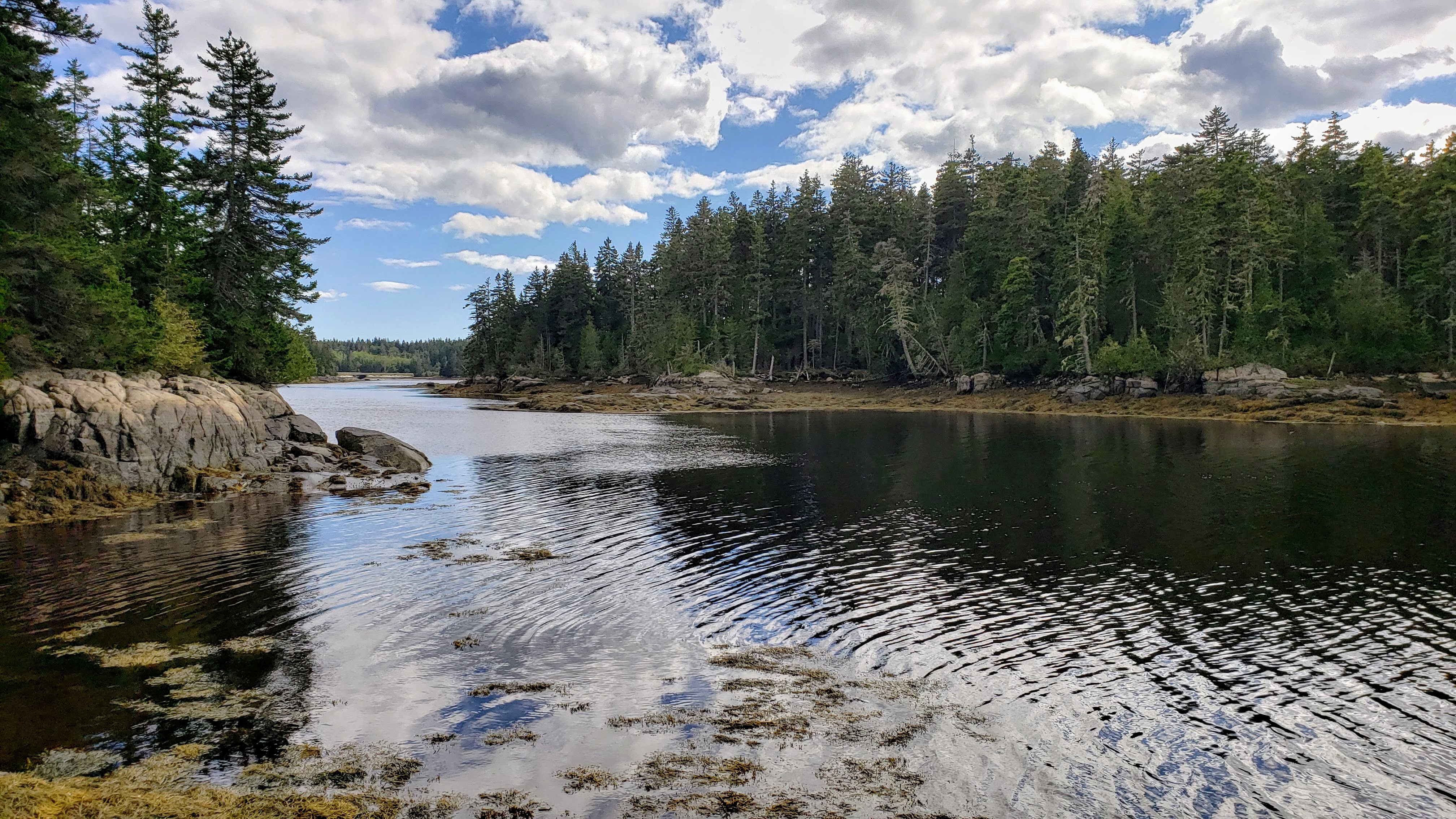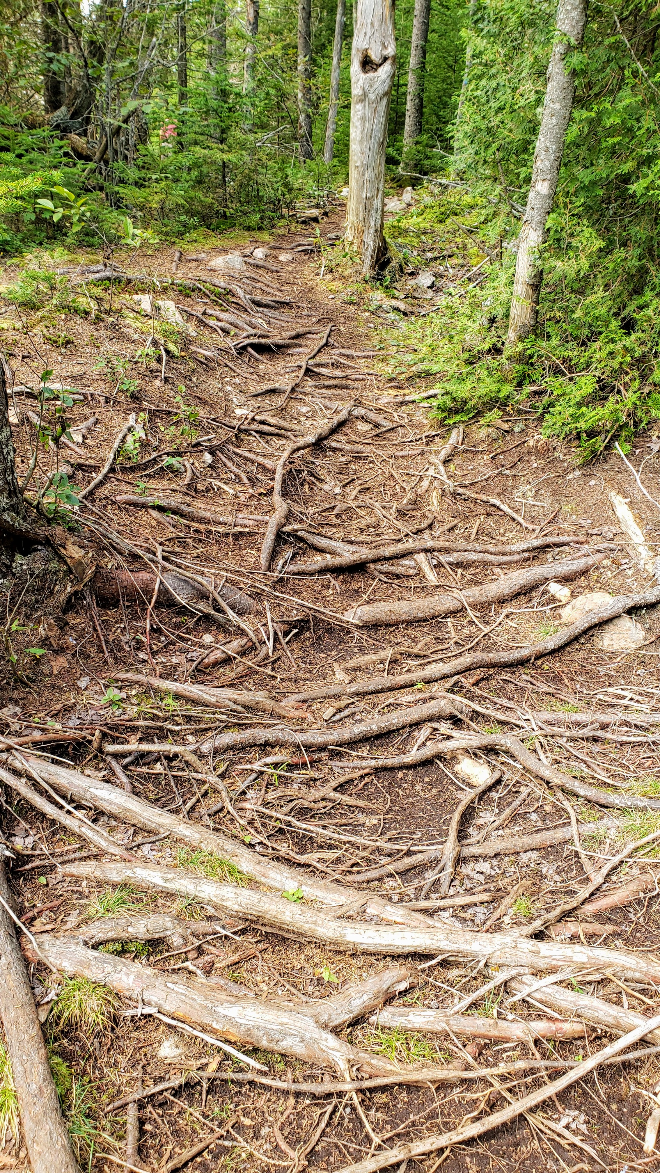 On Tuesday morning, I took a quick bike ride to Frazer Point and back and then stowed the bikes on the RV’s bike rack once again. I then drove to the nearby town of Winter Harbor for an excellent takeout lunch from a place called Chase’s Restaurant (lobster roll for Pat, and something called a lobster BLT for me). Once properly fueled, we took a hike along the Lower Harbor Trail, just across the main access road from the campground. This was a great trail that passed through the woods and alongside the waters of Winter Harbor to the east of Schoodic Peninsula. However, in contrast to the easy, open trails we took at the Jordan Pond on Monday, this one was rough and rugged, with lots of small hills and many sections that were strewn with roots and rocks. The return leg of the hike followed the wide, gravel paths I mentioned above, but my knees were not in any way happy when we got back. While it was only a little over 5 miles, it felt like 25 to me. It’s no fun getting old, dear readers.