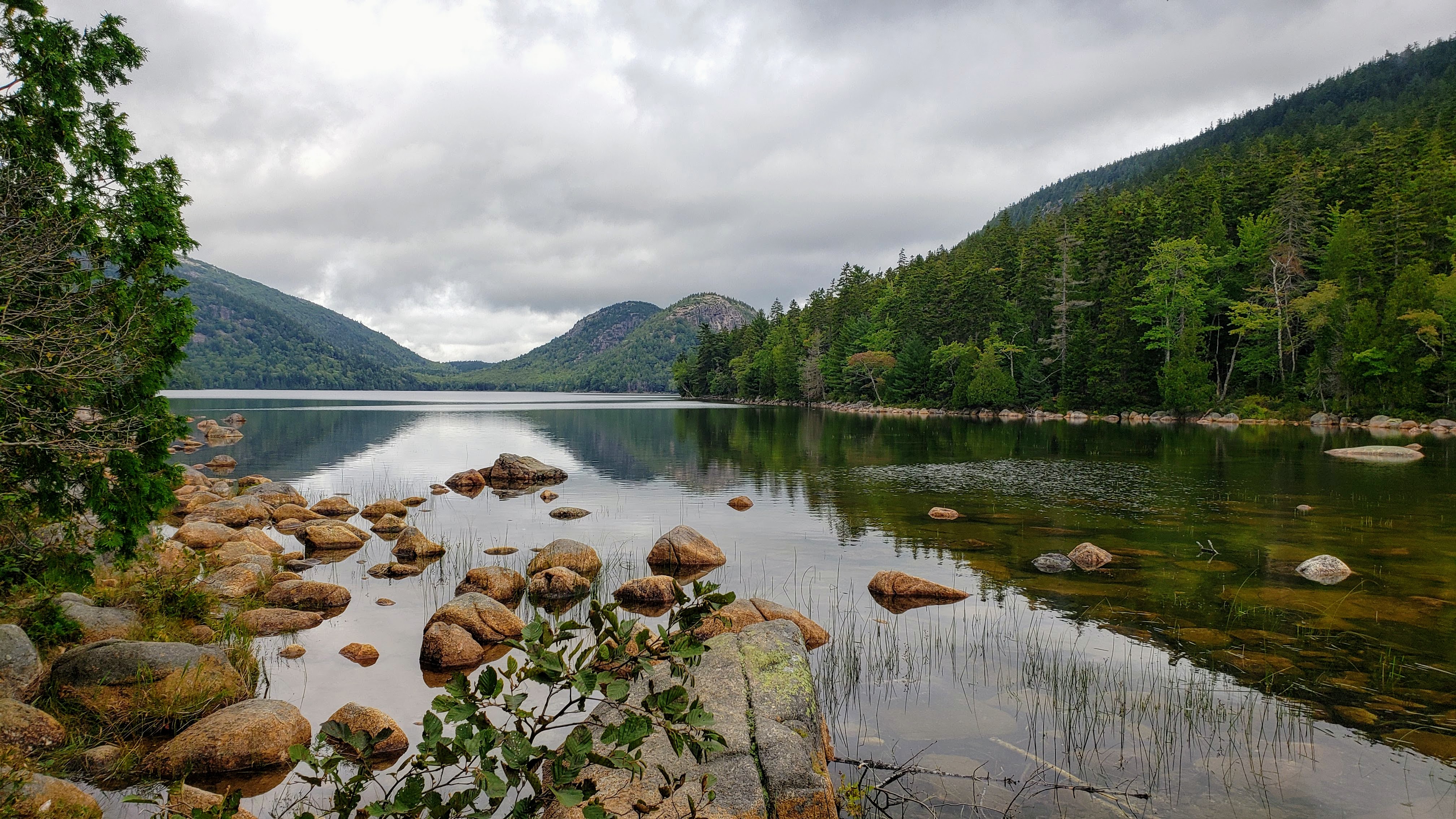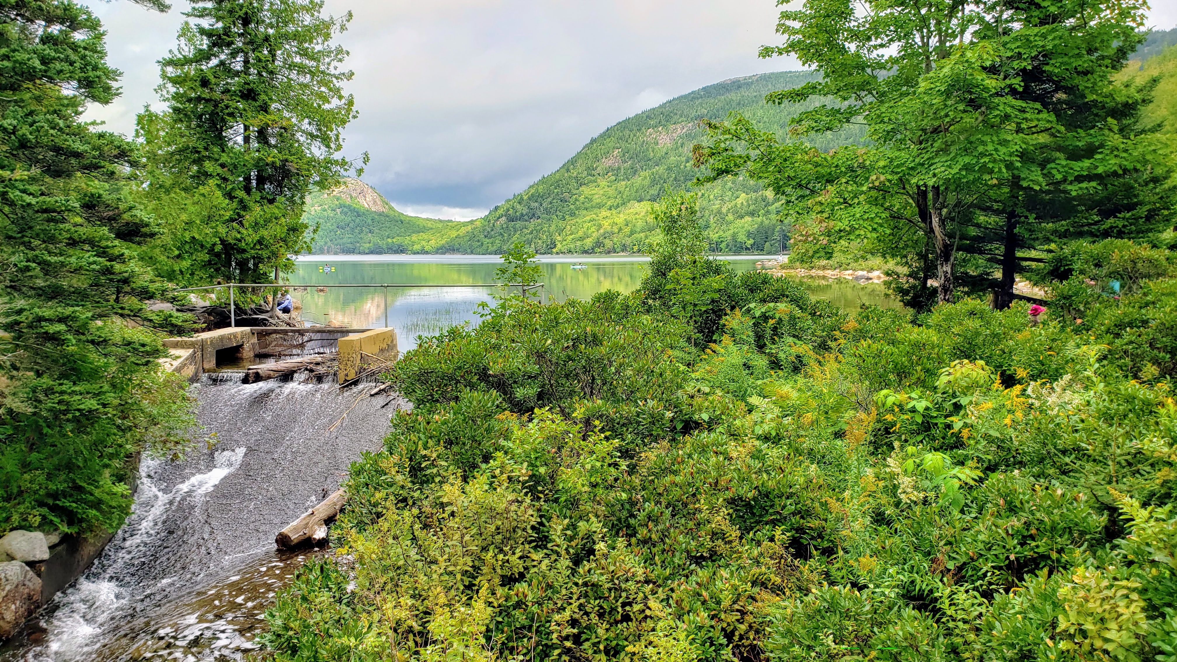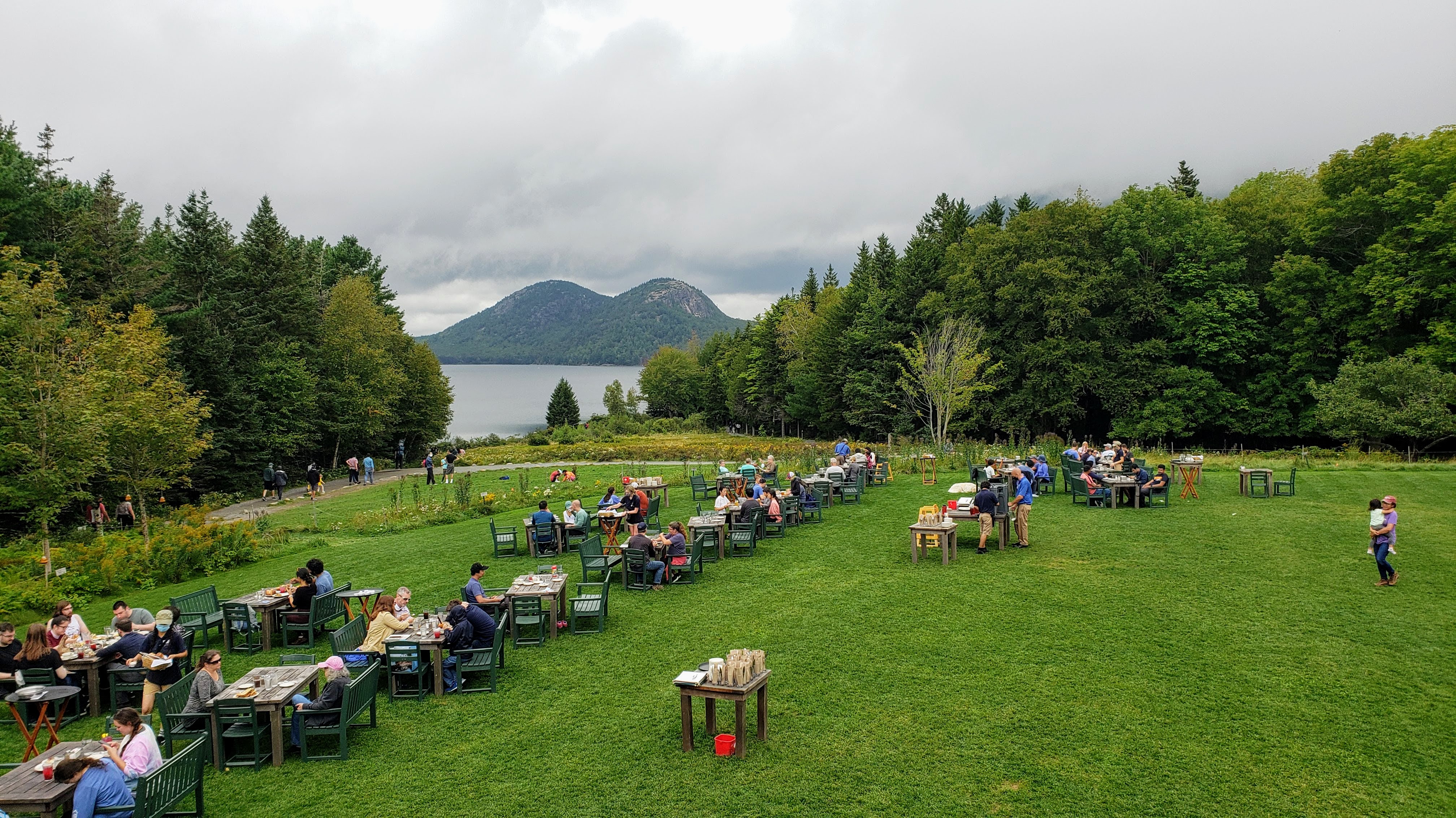 After Cadillac Mountain, we drove around the perimeter road, stopping occasionally to admire the coastal views, and eventually made our way to a beautiful inland lake called Jordan Pond. We had another nice hike there, followed by a late outdoor lunch at a very good restaurant where we enjoyed enormous popovers, seafood chowder, and lobster stew.