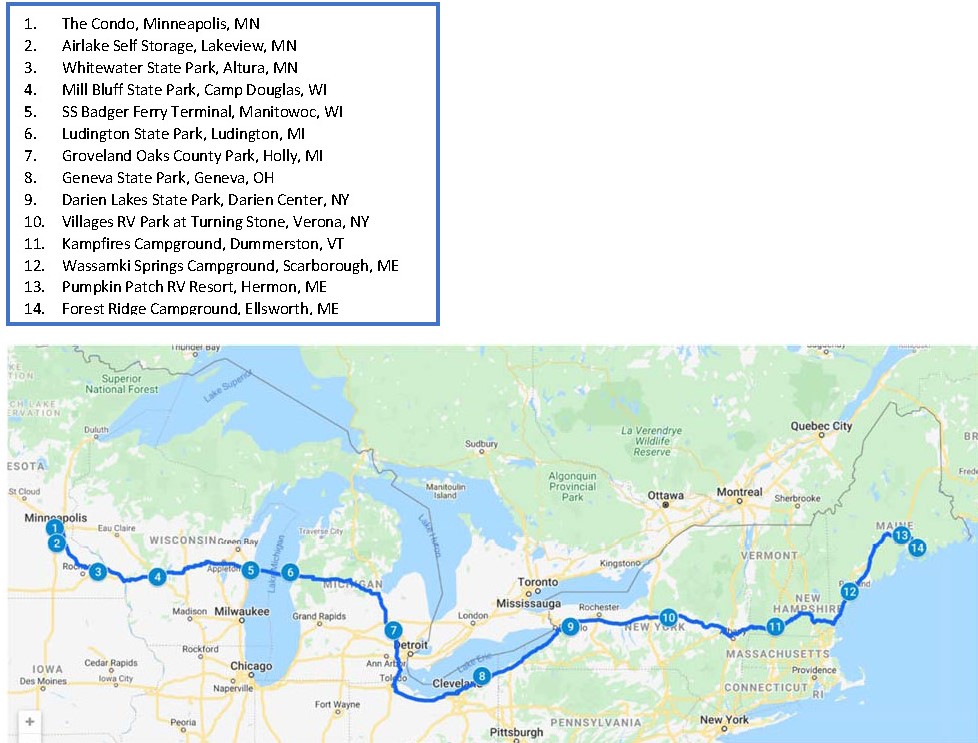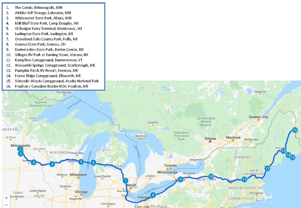 But seriously, though my clubs are back in the garage at the Cabin, I’m doing fine with no golf on this trip, so don’t look for any golf stories going forward. That’s our story of the Escapade so far. Here’s a map of the trip to this point: