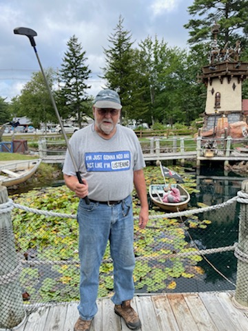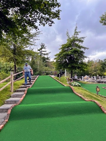 One final note: Several readers have expressed dismay about the fact that I haven’t done any golfing. (Apparently my links exploits in past blog posts have been appreciated more than I would have thought.) Just to put your minds at ease, I wanted to mention that I did go golfing last Monday. I played 18 holes on a nice course with lush, green fairways and a spirited creek running through it. I had a good round, with 3 birdies, 7 pars, 6 bogeys, and 2 lousy double bogeys for an overall, fairly impressive, 7 over par. And Pat played well, too, with 14 over. Wait … what? Pat played golf, you gasp! Why yes, I had 42 and she had 49. Oh, did I mention that it was a pretty short course?