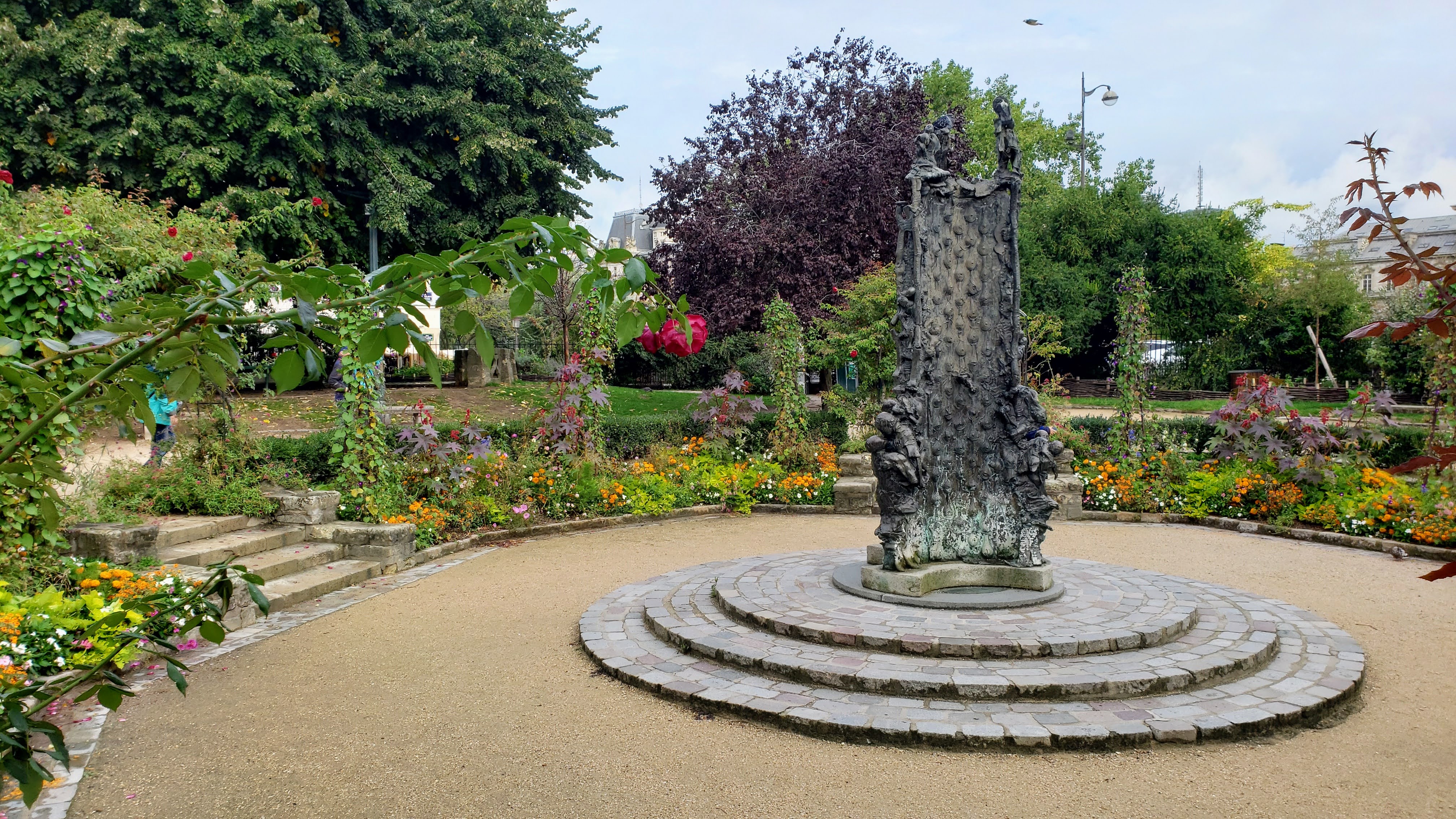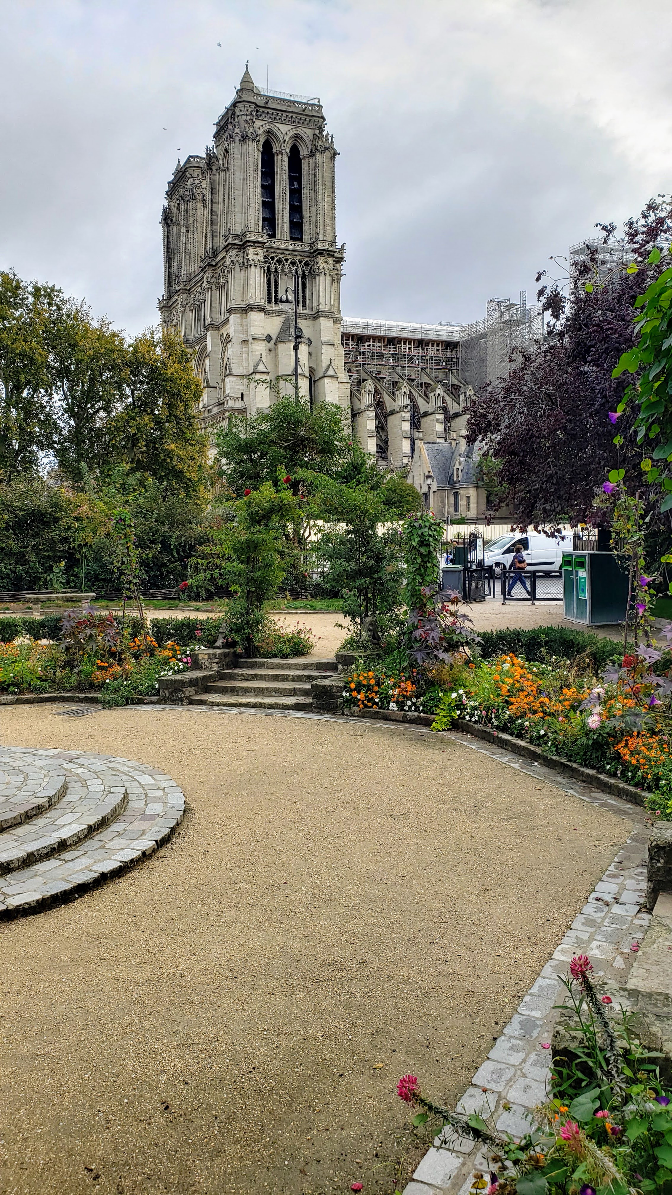 The bus crossed to the left bank again and dropped us off near the Square Rene Vivani, a scenic park on the left bank, which offered a view of the Cathedrale Notre-Dame de Paris. The cathedral is located on an island in the river called Ile de la Citie, the strategically located site of the original city of Paris. It is currently inaccessible as work continues to restore the cathedral following the major fire in April of 2019, with scheduled completion in time for the 2024 Paris Olympics.