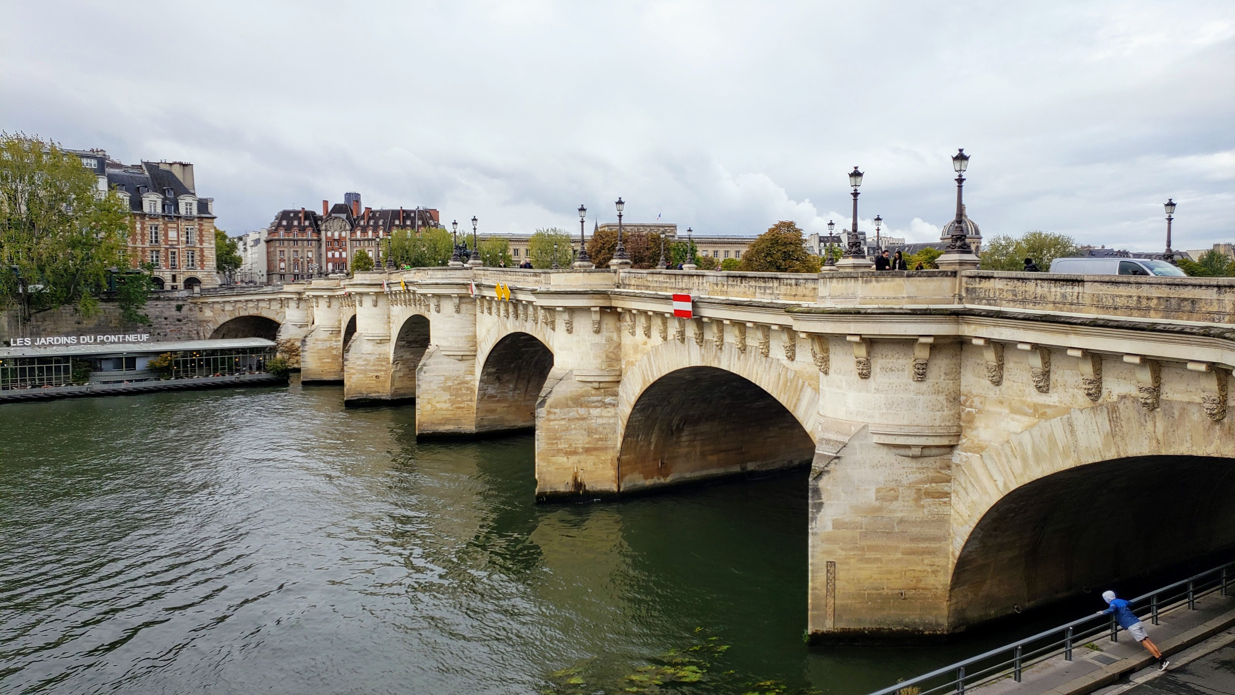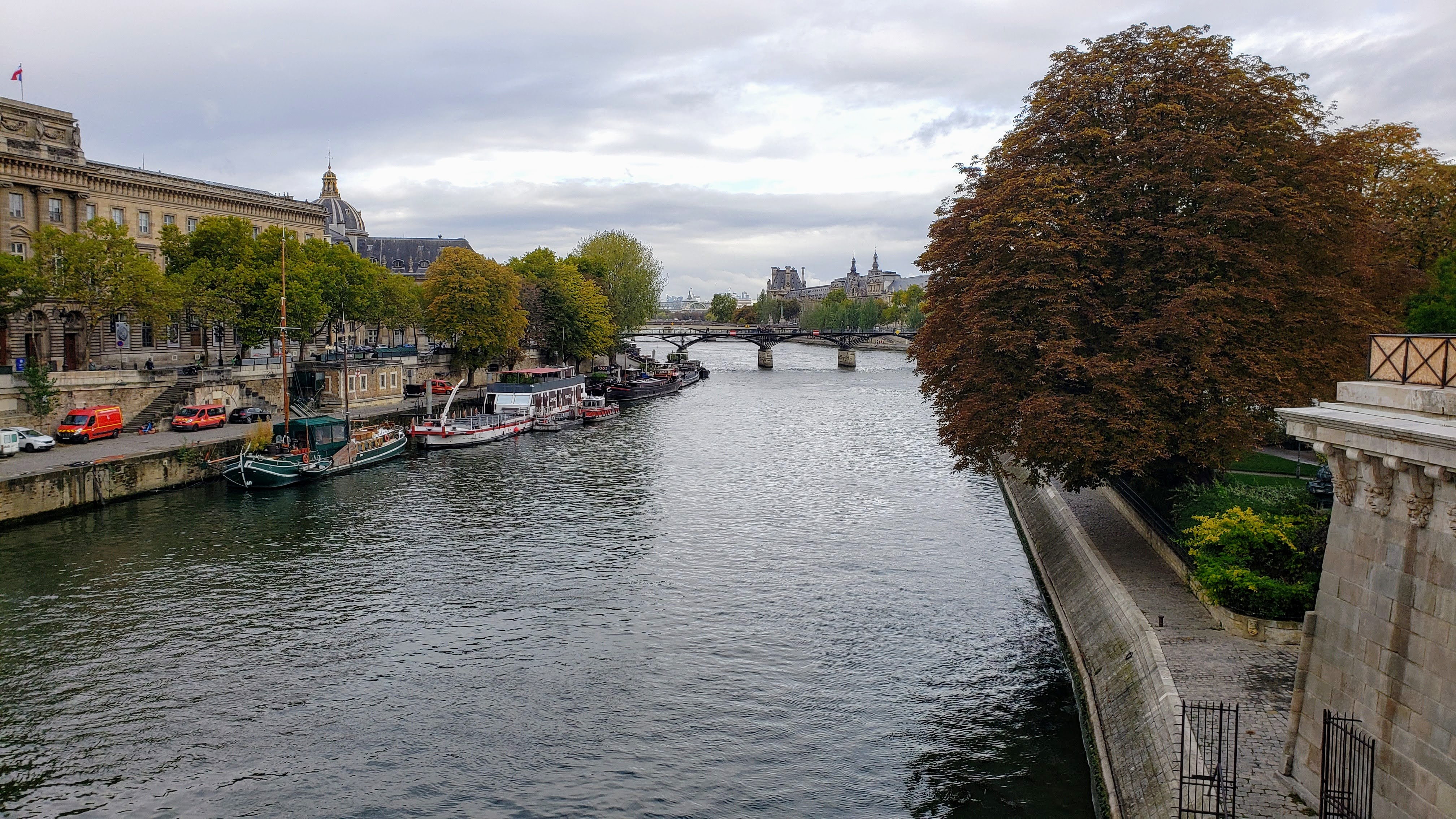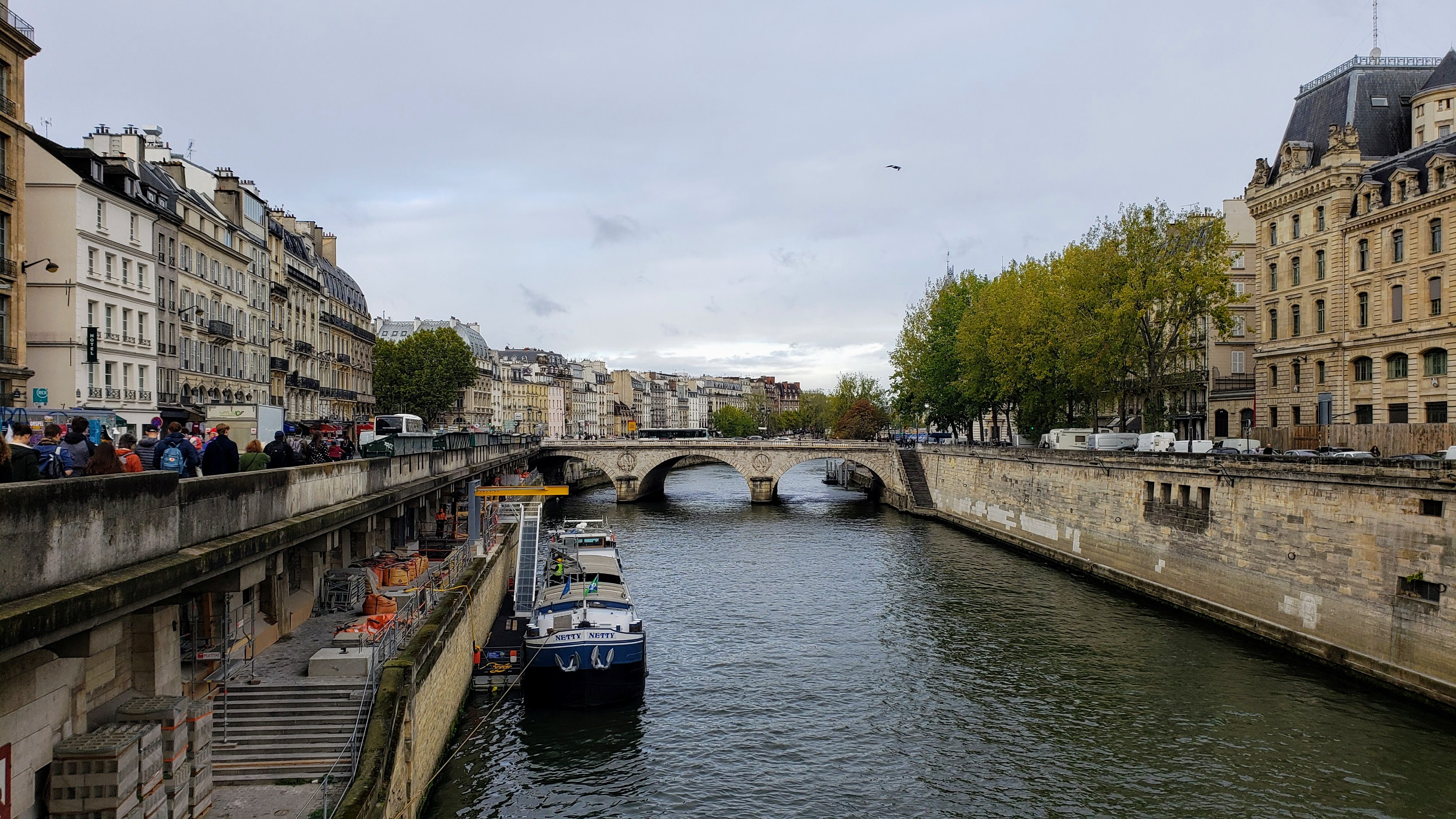 After a brief talk by our guide, we were given some time to wander on our own with instructions to be back in no more than 40 minutes. We set off across the river onto the island, where we passed by the central police station located on a street known as the Quai des Orfevres, which immediately brought back memories of the books I’ve read by George Simenon featuring Chief Inspector Maigret – his office was located in that very police station. We enjoyed ourselves immensely as we wandered aimlessly westward to the end of the island, then across to the right bank and back eastward, snapping photos in every direction.