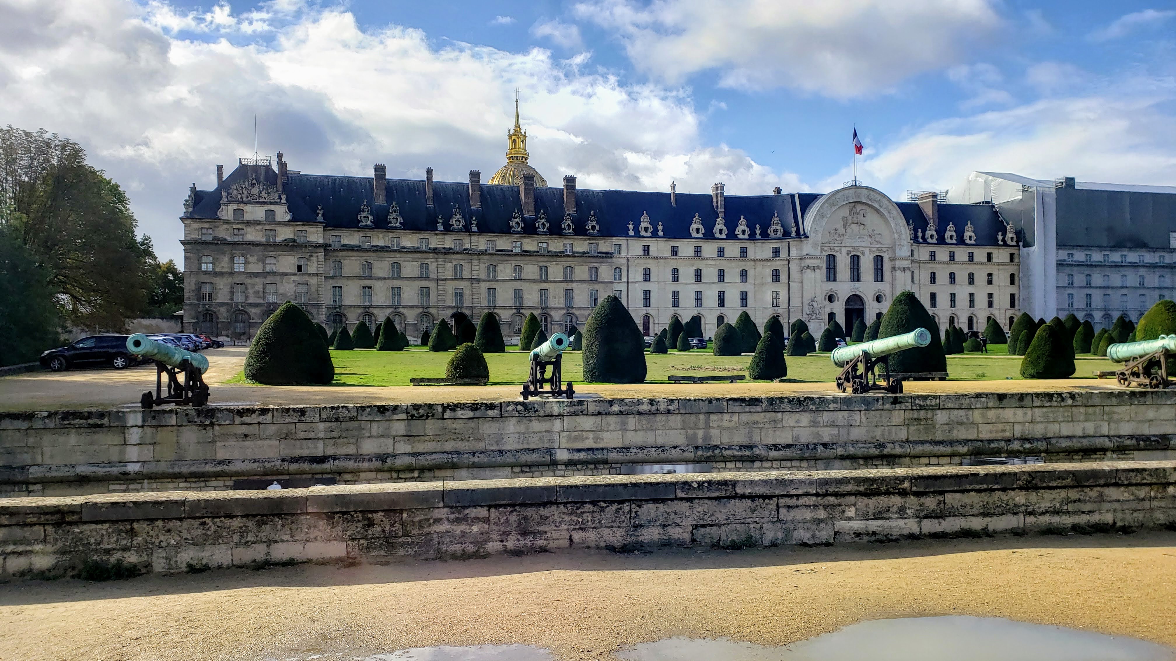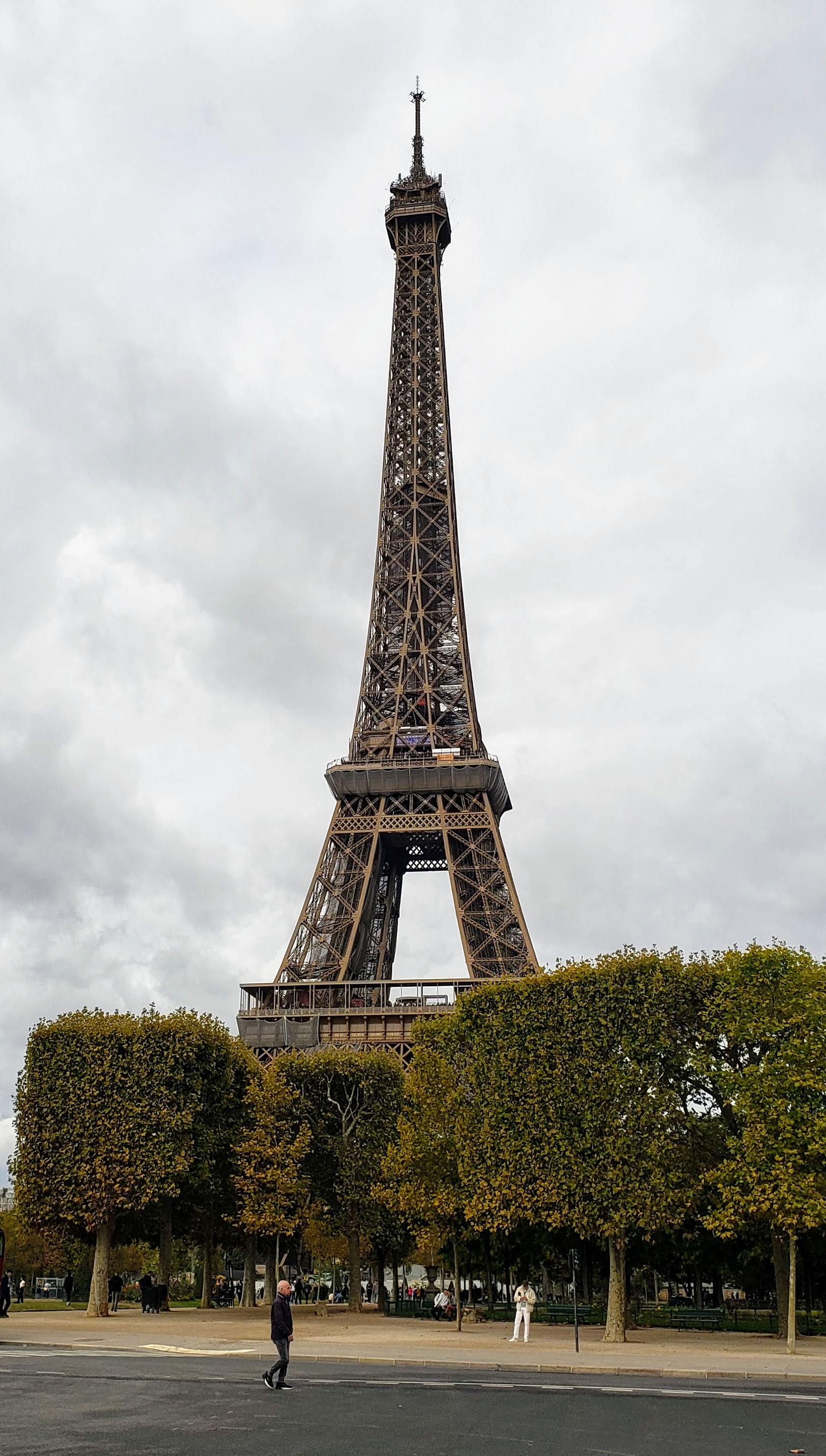 We walked with the guide for several blocks and through some lovely parks to the famous Sorbonne University, where our bus returned to pick us up again. We drove through the Luxembourg Garden, back to the left bank, and past the Hotel des Invalides – a complex of buildings containing museums and monuments relating to the military history of France, originally constructed by Louis XIV as a hospital for wounded soldiers – before stopping briefly at the most iconic landmark in Paris.