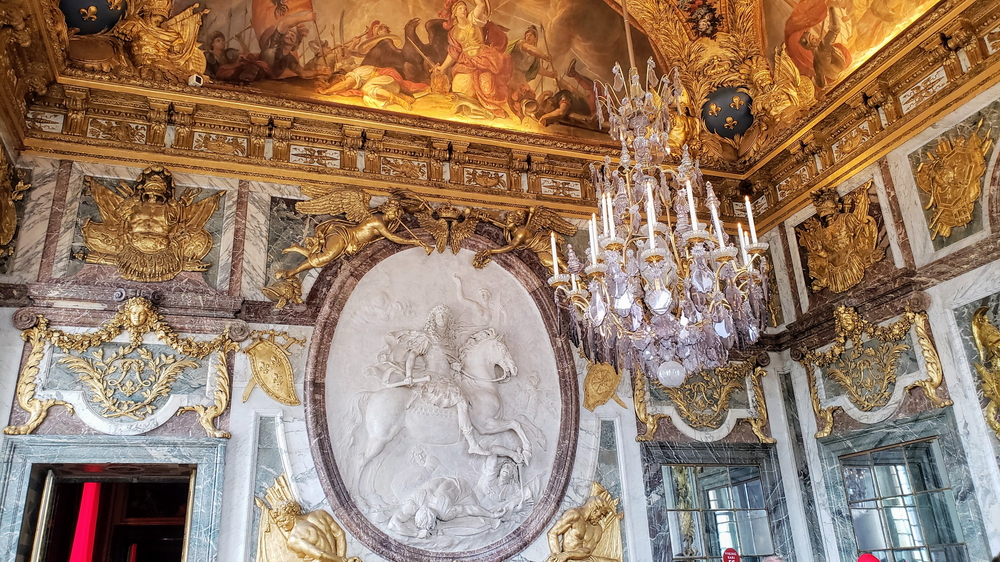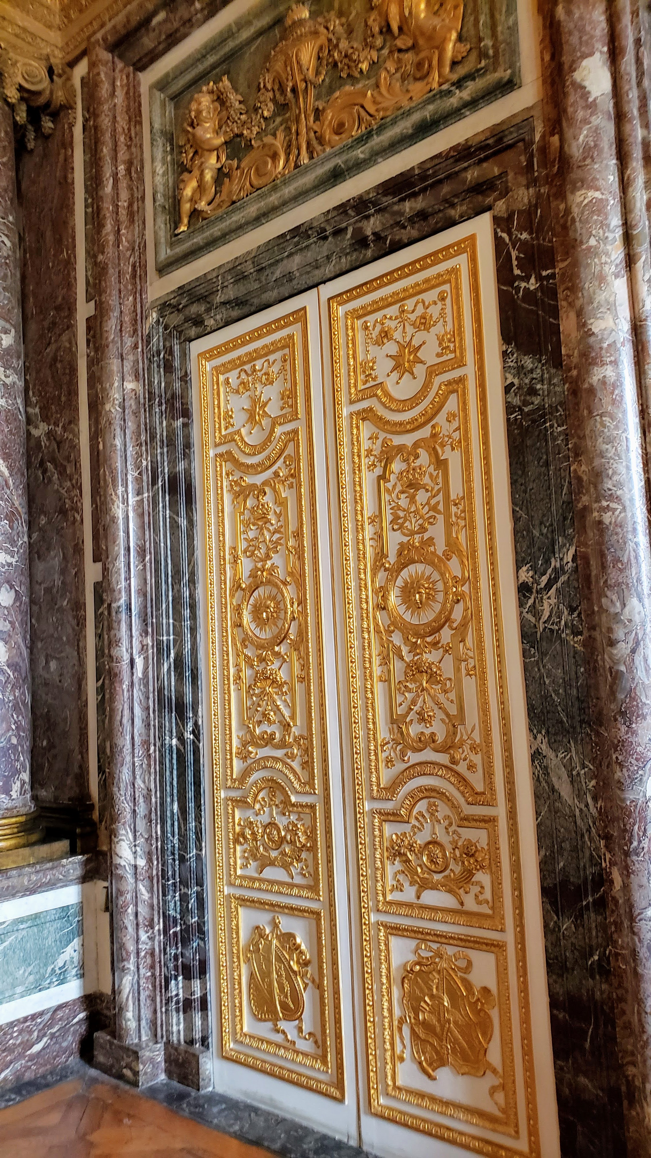 Getting back to the tour – I can only say that Versailles is simply stupendous. It was built by Louis XIV between 1661 and 1715 on the site of a hunting lodge and chateau built by his father. In 1682, he moved the seat of his court and government to Versailles, making the palace the de facto capital of France. This continued during the reigns of Kings Louis XV and Louis XVI, who primarily made interior alterations to the palace, but in 1789 the royal family and capital of France returned to Paris. For the rest of the French Revolution, the Palace was largely abandoned and emptied of its contents. Napoleon used Versailles as a summer residence from 1810 to 1814, but did not restore it. Following the Bourbon Restoration, when the king was returned to the throne, he resided in Paris and it was not until the 1830s that meaningful repairs were made to the palace. We first toured the gardens, then entered the Palace itself for a guided tour – tour groups are limited to no more than twenty people and set for specific time periods. I won’t try to say anything more about the Palace, but leave you with the following photos that don’t fully convey the beauty and magnificence of the place.