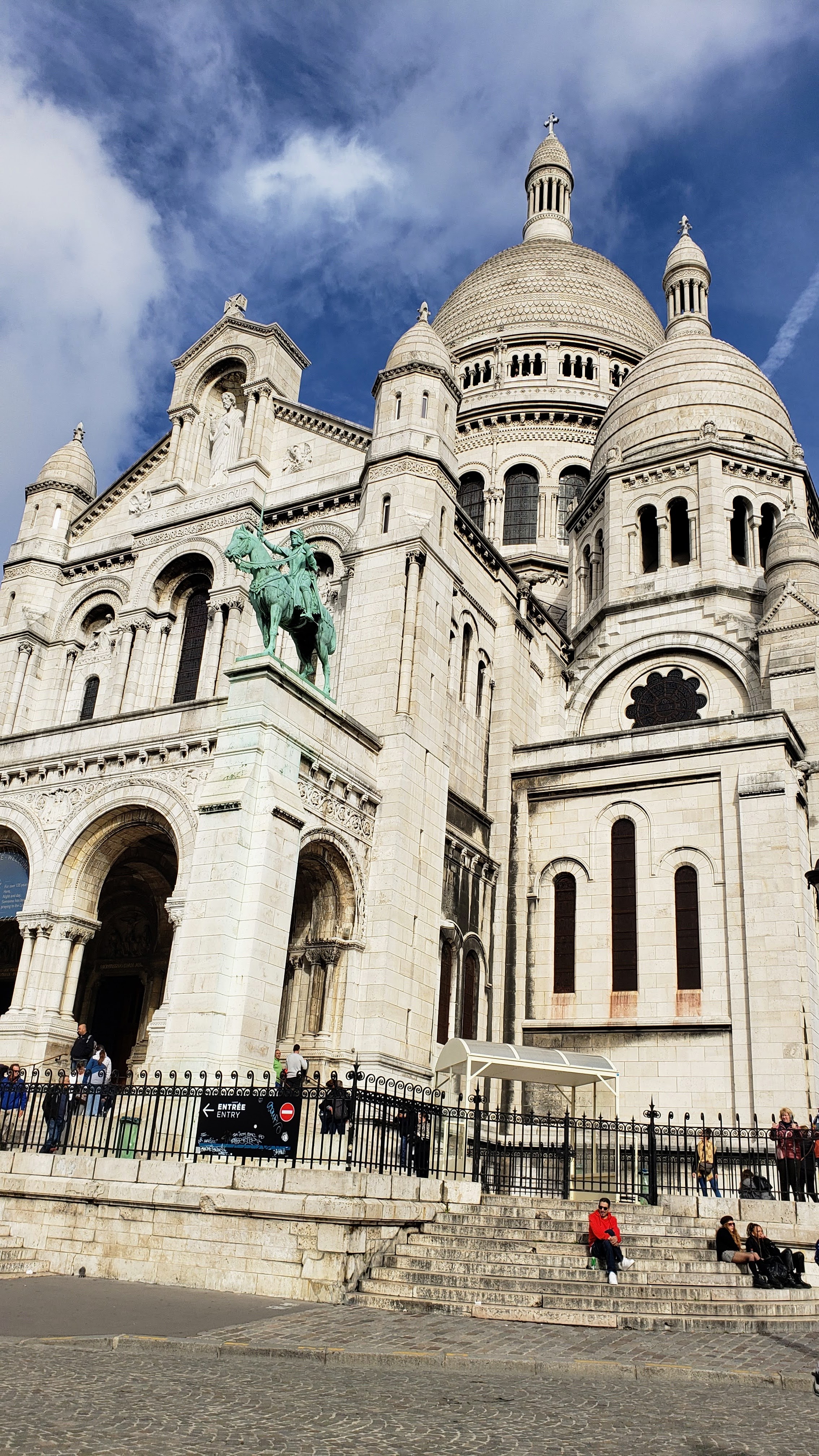 Our first trip was to the Montmartre district, where we rode a little tram up Montmartre hill (which we were each able to board using one of the Metro tickets) to visit the Sacré-Cœur (Sacred Heart) Basilica and have some nice views of Paris from the high elevation.