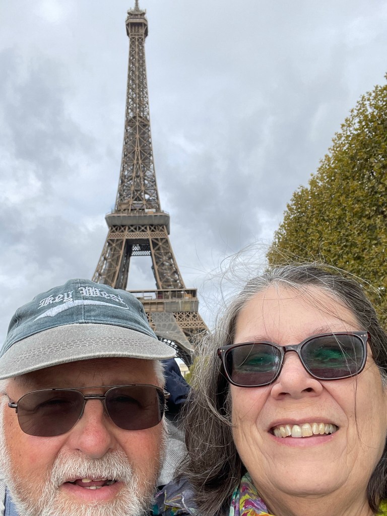 During the flight, I watched two movies (including Maigret, starring Gerard Depardieu, inspired by our sighting of the Quai des Orfevres police station). In stark contrast to Charles De Gaulle, when we disembarked at Dulles International in Washington, DC, we found an old, grungy-looking place. We took a weird looking bus to an enormous customs hall, where we had to shuffle along in line for half an hour to reach one of the entry gates with an actual person in attendance. (There were about fifty gates, but only ten or so were in service.) After passing customs, we took a tram to the Delta check in counter to drop our luggage, then went through the TSA screening line with shoes and belt removal and all that because Delta failed to note that we are approved for TSA PreCheck, had a mad scramble to find my phone and vest, and ended up literally running to our gate as we were being paged: “Passengers David and Patricia Saari, report to Gate xx for immediate boarding.”