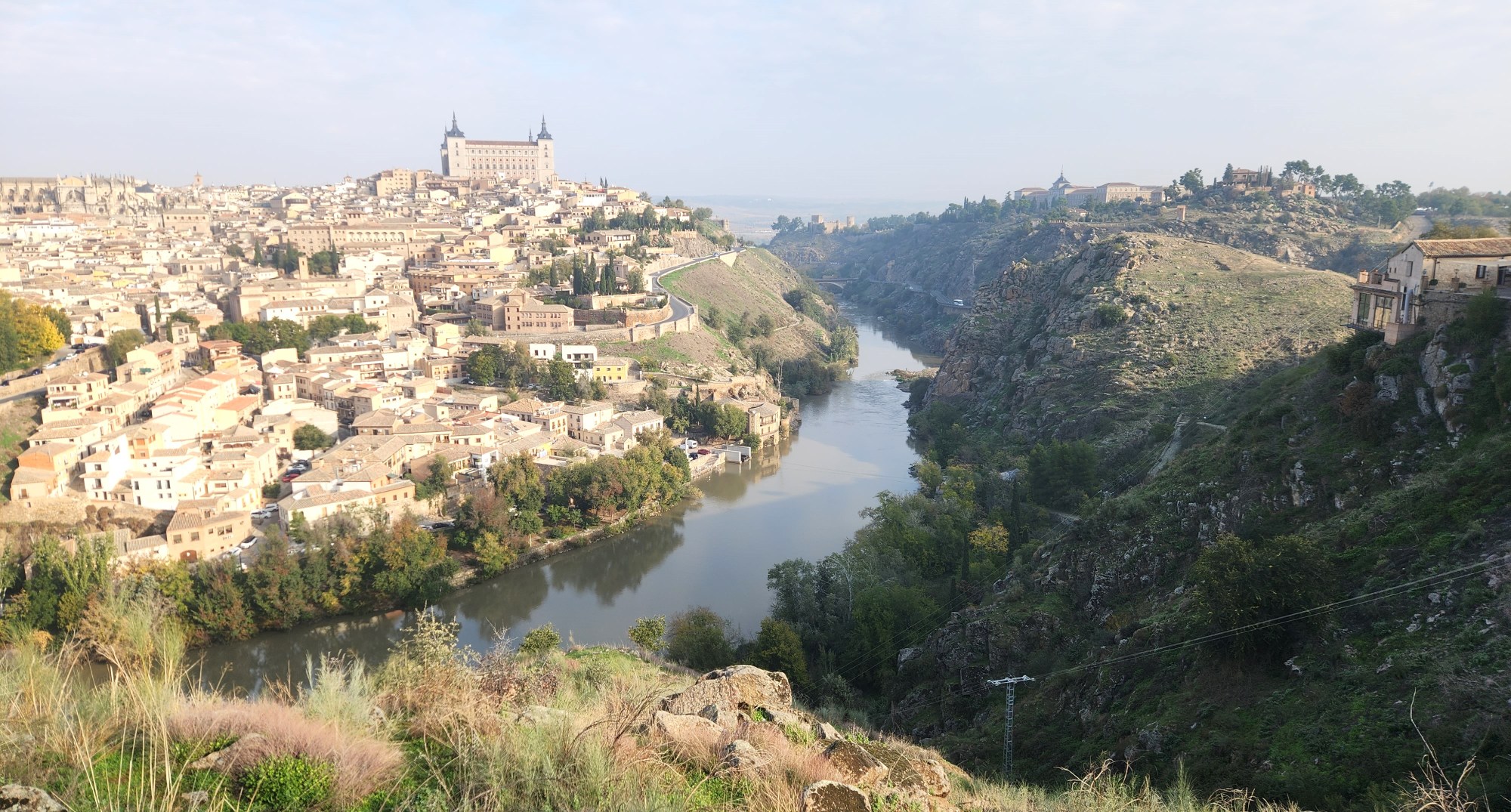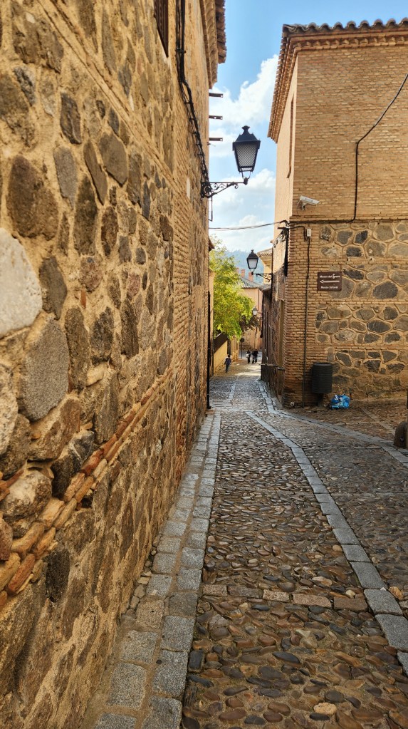 On Saturday the 9th, we rode a bus some 45 miles south to Toledo, the original capital of Spain before Philp III made Madrid the capital in 1603. Toledo is strategically located on a high hill on the north bank of a bend the Tagus River.