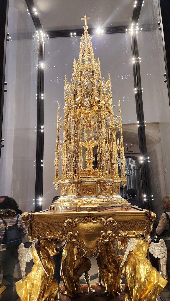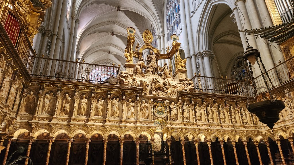 Our first visit was to the gothic style cathedral, which was begun in 1226 and completed in 1493. Among its treasures is a magnificent gold artwork called the monstrance, made for Queen Isabella in 1515-1523, that is carried through the city during annual festivals.