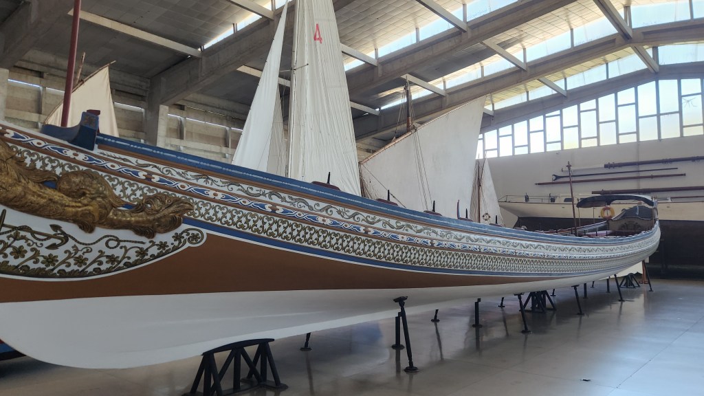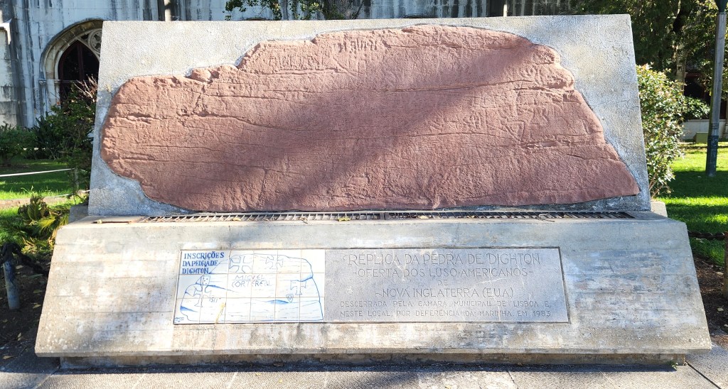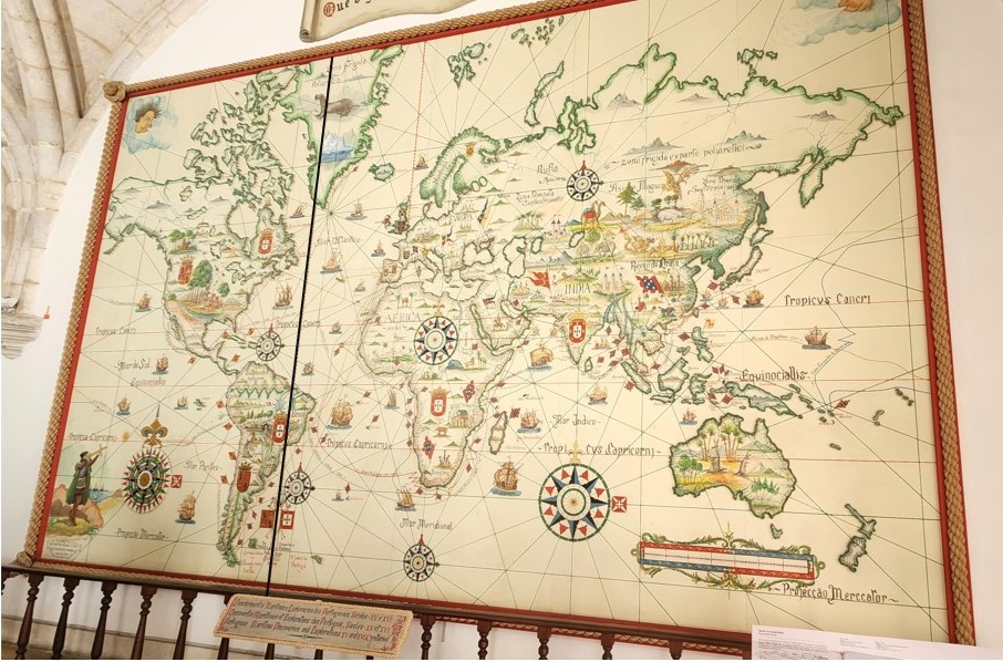 After visiting the tower and a surrounding park, we moved on to the Maritime Museum, dedicated to all aspects of the history of navigation in Portugal. Our guide pointed out many of the interesting features and explained how Spain (Castile at the time) and Portugal signed the Treaty of Tordesillas in 1494 to divide the world in half – Portugal was given the lands to the east and Spain those to the west of a line of demarcation. The two countries explored and claimed much of the world, with Portugal establishing colonies in Africa and India and conducting trade as far east as Japan beginning in 1543. Portuguese explorers continued to sail the east coast of North America – an inscription carved on Dighton Rock in 1511 supposedly commemorates Miguel Corte-Real – but did not settle there in accordance with the treaty. Portugal was allowed to establish their colony in Brazil since it lay to the east of the treaty’s demarcation line, although the western part of what became Brazil is actually to the west of that line.