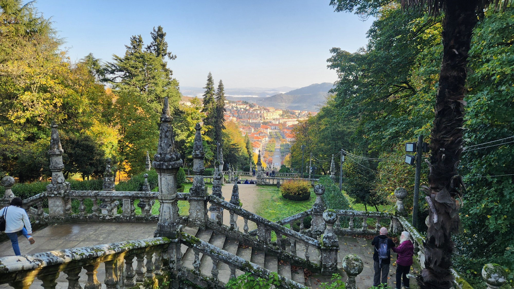 Our first stop was the Sanctuary of Our Lady of Remedies, built in 1750. The church houses an unusual and somewhat controversial statue of a breast-feeding Madonna commissioned at the request of the Bishop of Lamego in the 16th century, initially intended as a shrine to ensure fertility and later seen as a cure for various diseases. The Sanctuary sits at the top of a hill overlooking the city center, accessed by an imposing staircase with 686 steps and beautiful porcelain artworks depicting various historical or religious scenes. Pilgrims hoping to be blessed or cured would climb these steps on their knees to show their devotion before reaching the Sanctuary and kissing the Madonna statue. The church includes many other artworks as well, including a statue of baby Jesus that the nuns carefully dress from head to toe, including stockings.