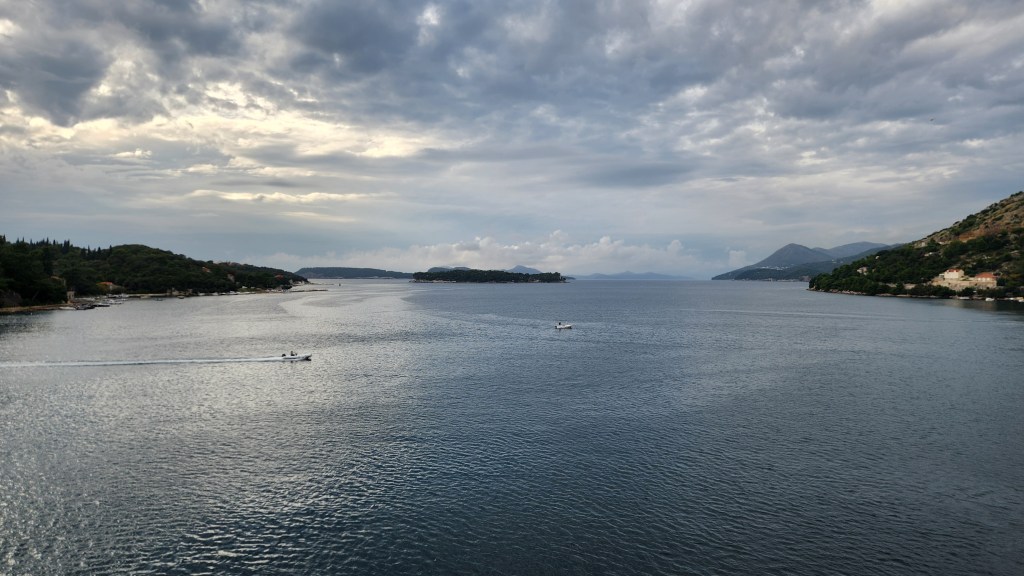 We still enjoyed the outing, however, which carried us through a good portion of the city before we returned to the marina to catch a Viking shuttle bus back to our ship. Here’s a final look at the Straits of Corfu as the ship sailed off for our next destination.