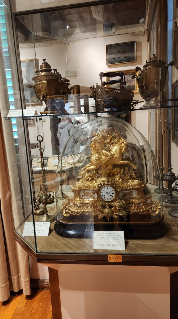 After our tour of the Olympics site, we strolled into the nearby town of Olympia for lunch and a brief stop at a small museum dedicated to Archimedes. Photos were prohibited, so I can’t show any of the exhibits, but they were quite impressive, detailing many of the Greek genius’s inventions and relating the sad story of his death at the hands of a Roman soldier during the siege of Syracuse in 212 BCE, despite Roman orders to spare his life. (NOTE: We later went to a much larger ancient technology museum in Athens that also featured Archimedes; I’ll describe that in Part 4.)