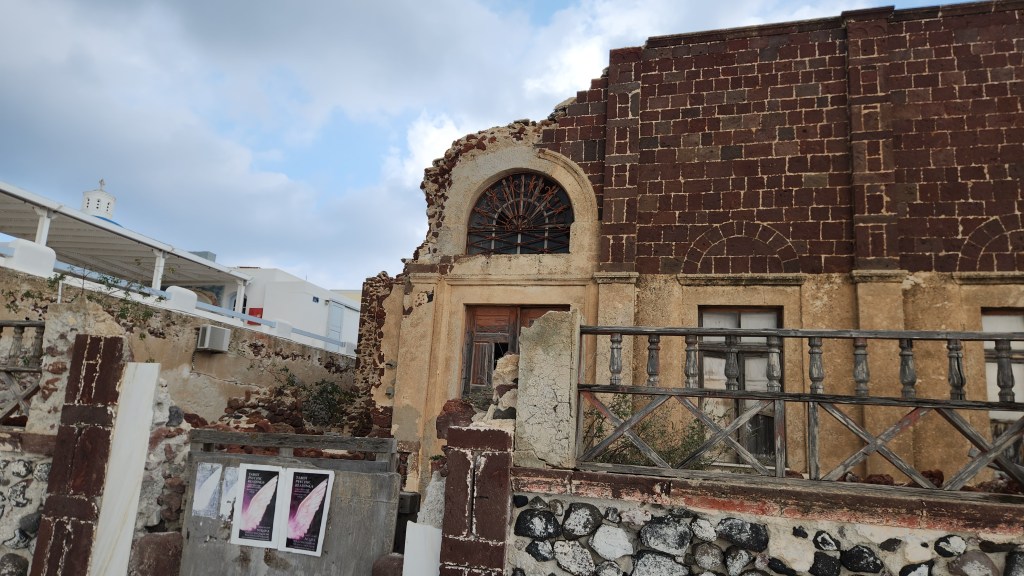 Earthquakes caused by a nearby underwater volcano have damaged some buildings over the years, such as this house we saw as we wandered around.
