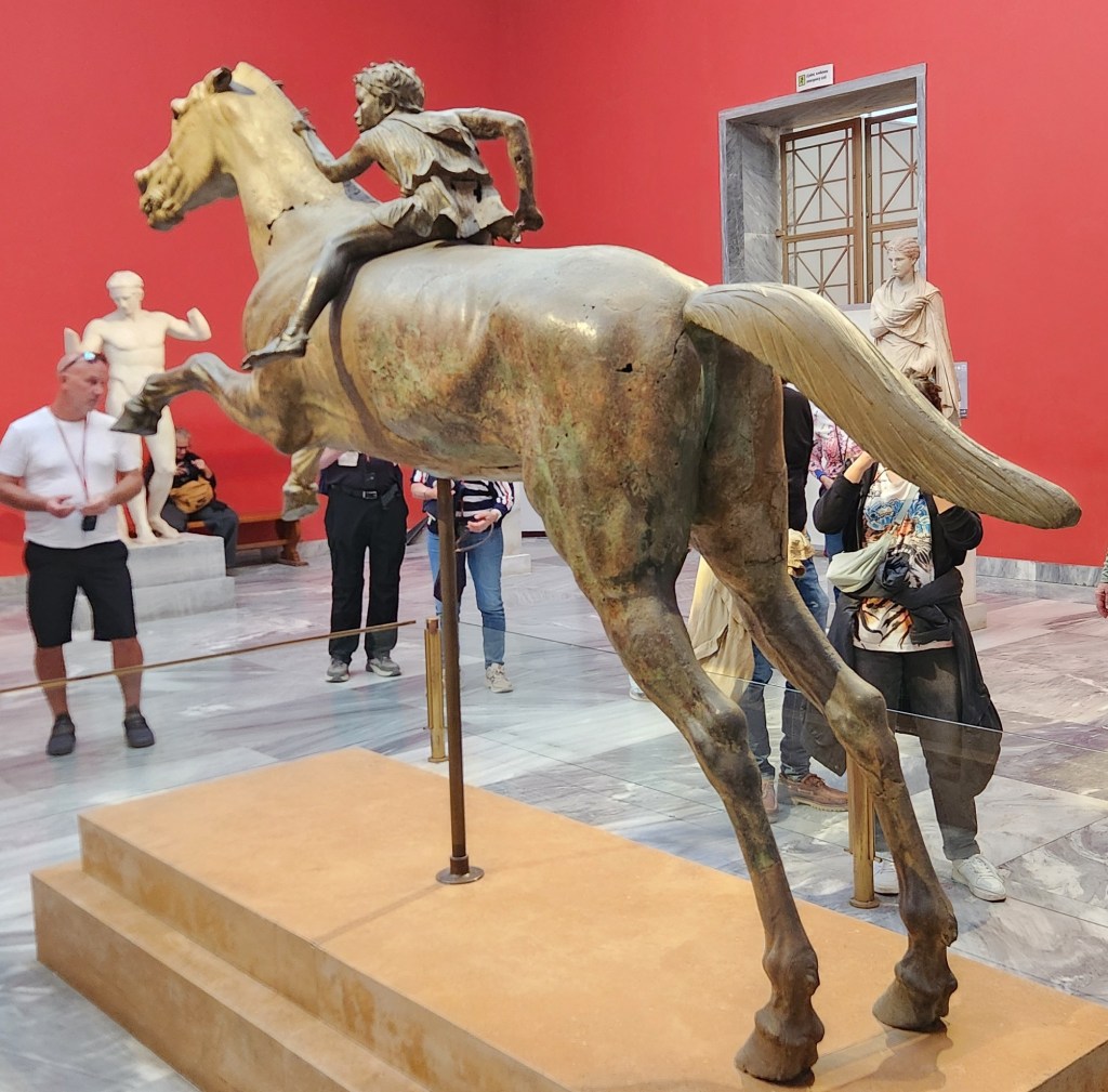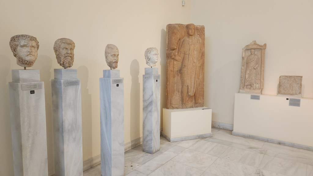 Athens, Greece (Saturday, November 8, 2025): Our ship arrived in the port of Piraeus, the largest of three ports serving the capital city of Athens, at 8 AM Saturday morning. Shortly after, we left for a half-day shore excursion to the city of Athens during which we saw the major sights out the bus windows before stopping for a thorough tour of the National Archaeological Museum. I’ve included some photos from the museum below. (I didn’t get any good photos from the bus, but don’t worry – you’ll see plenty more of Athens coming up in Part 4.)